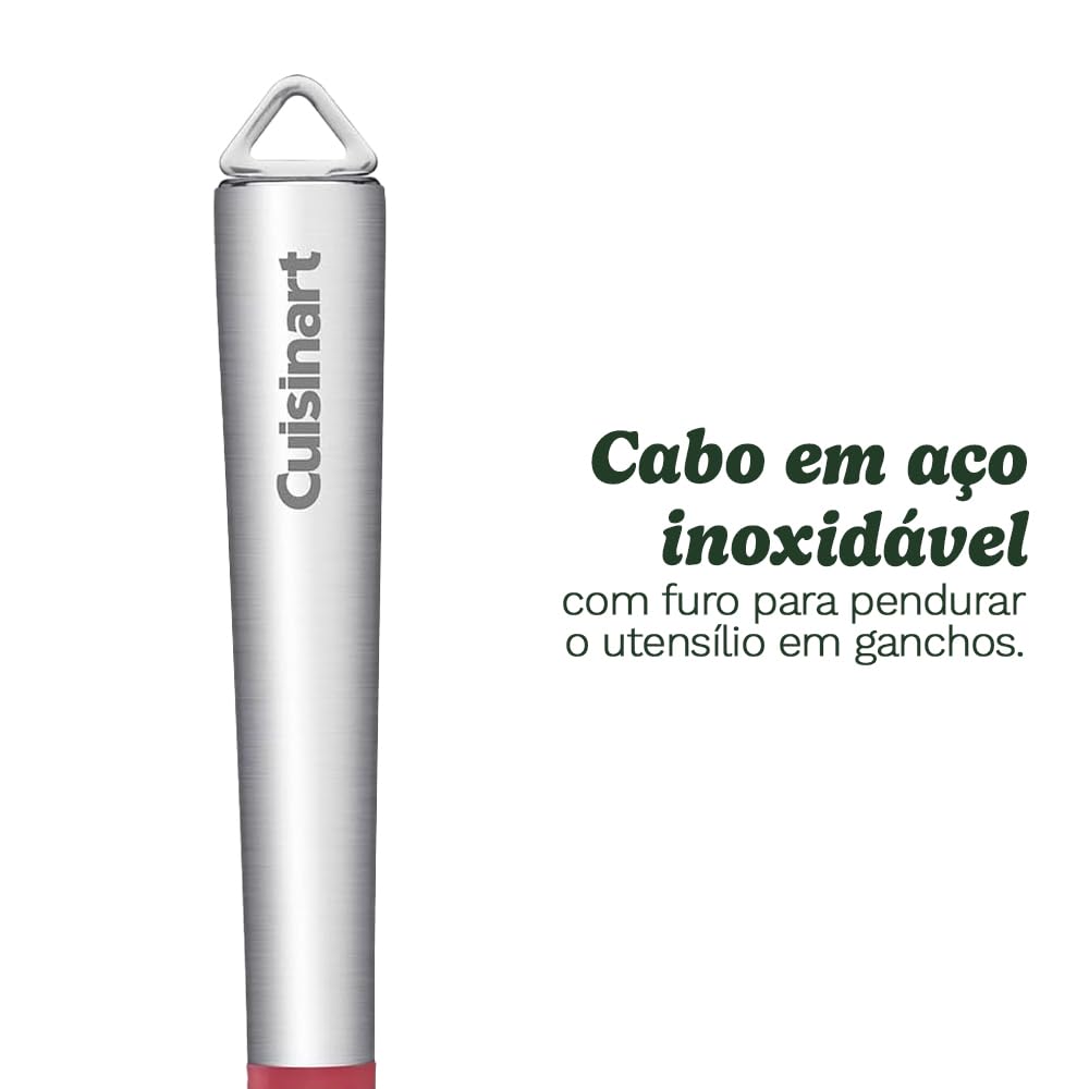 Durable, versatile and beautiful, Cuisinart new line of chef-caliber kitchen tools is a fusion of the fi nest features and materials. Stainless steel handles contrast with black nylon heads, while the Red ring in the middle of each tool adds a dash of Color. The contemporary design adds an on-trend touch to any kitchen. These dishwasher-safe utensils and gadgets cover nearly every prepping, cooking and serving task, blending sophisticated form and function with superior ease and convenience. Features: Stylish stainless steel handle|Durable nylon head won.