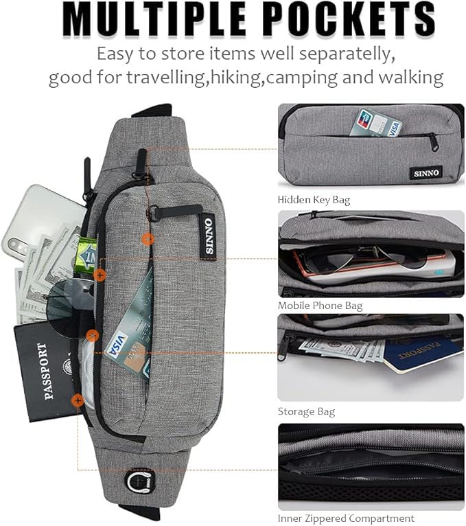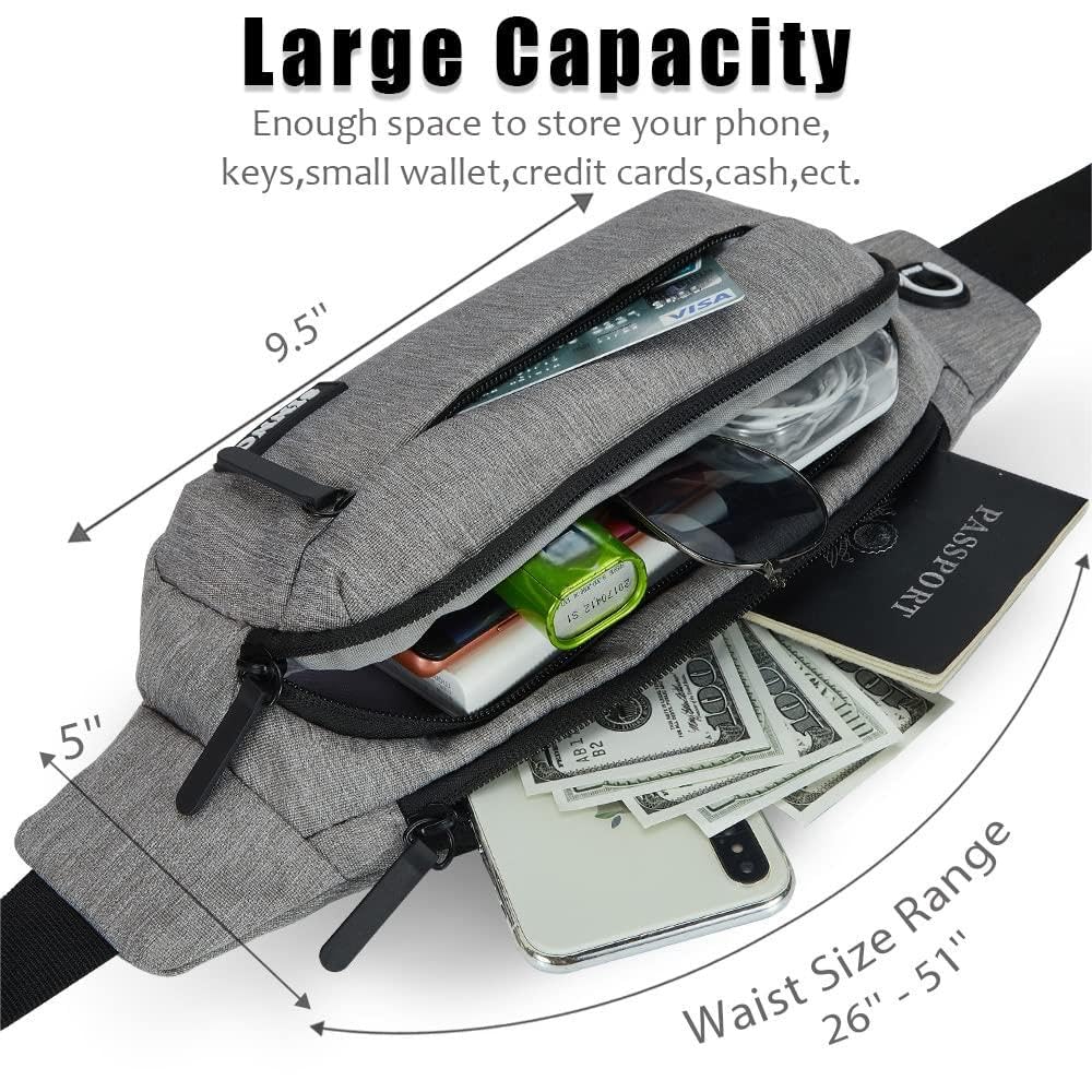 【Best Gifts for Men Women】Our fanny pack size is about 13.5"x 5" x 3.5" with 4(Four) zippered pockets perfect for most people who want to be hands free to carry the most needed items,include all size of phone(iphone 13 14 pro max...), passport, keys,ID and other travel essentials. Perfect for various outdoor activities such as Running,Hiking,Shopping,Traveling,Walking Dog,Jogging,Cycling,Fishing,Going to Sporting Events,Themepark,Day Trips,etc.A great Gift for Women Men Kids and Family.