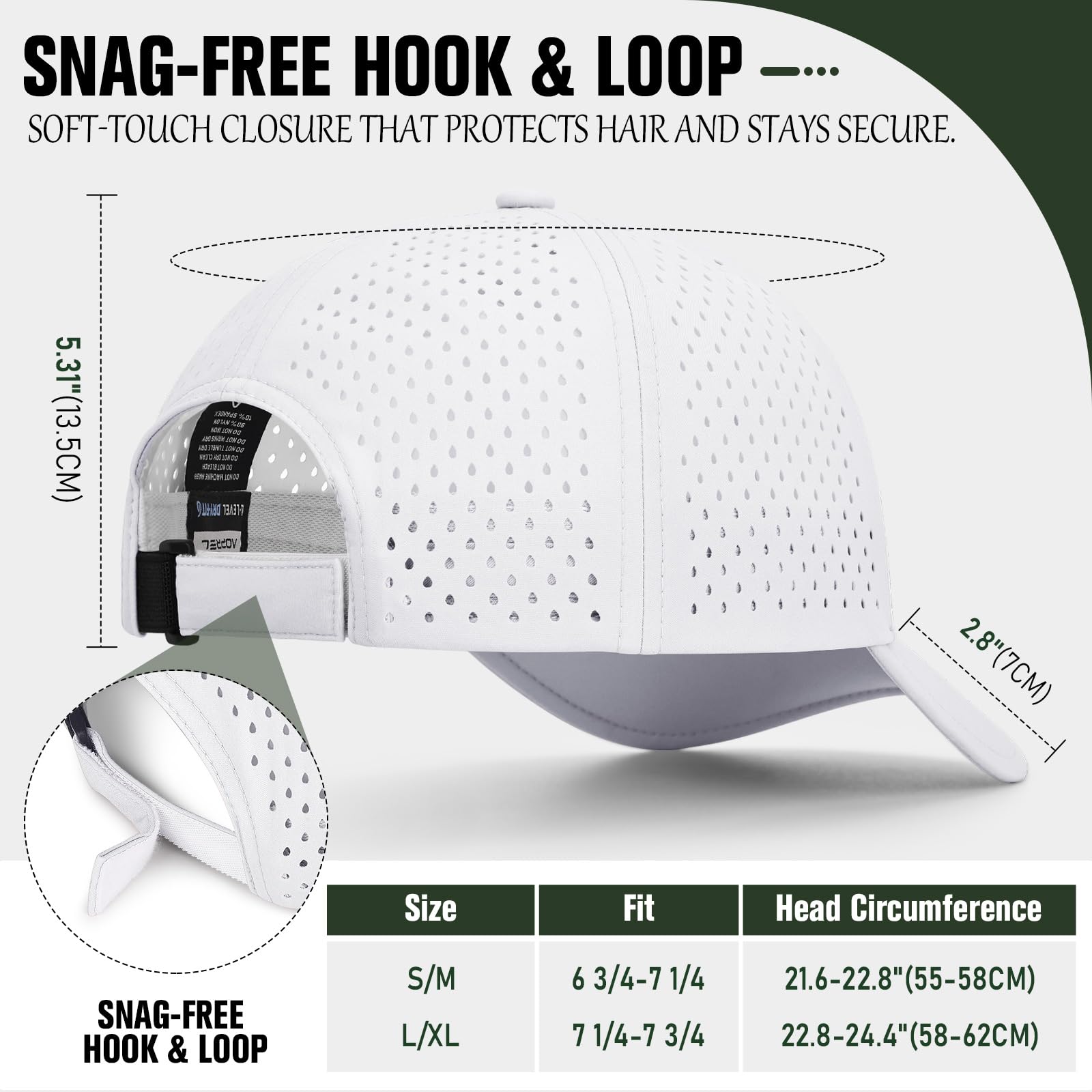 【Dynamic Fit Adjustment】Tired of hat pulling hair? Our hair friendly hook and loop closure design allows for immediate and perfect styling. Just pull to the appropriate size, press and ensure safety. Paired with elastic band, enhance the hat's adaptive adjustment. Let you instantly fit perfectly! it stays put through workouts, windy days, and adventures. Designed for both men and women, these gym hat comfortably fit head circumferences 21.6-23.6'' (55-60cm).