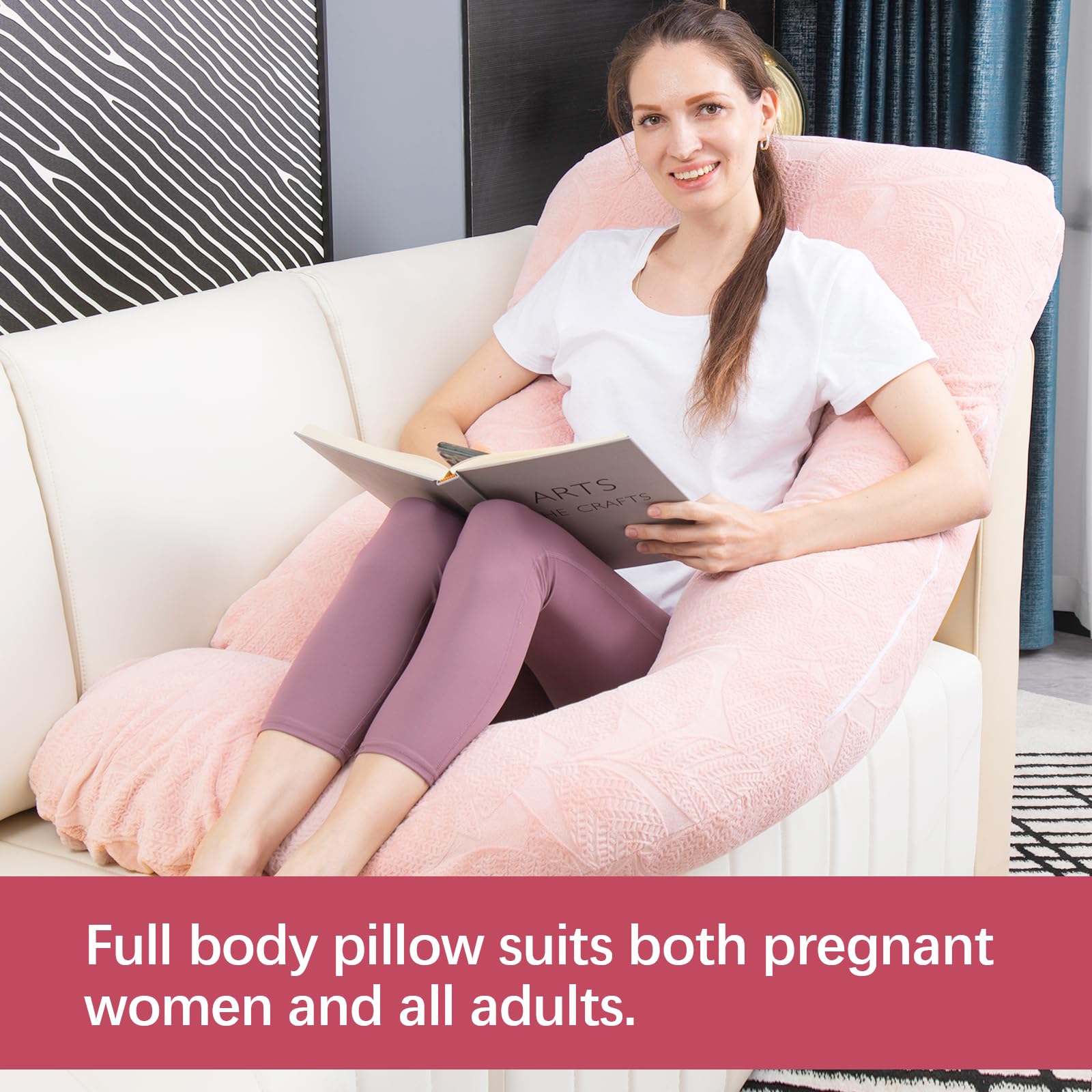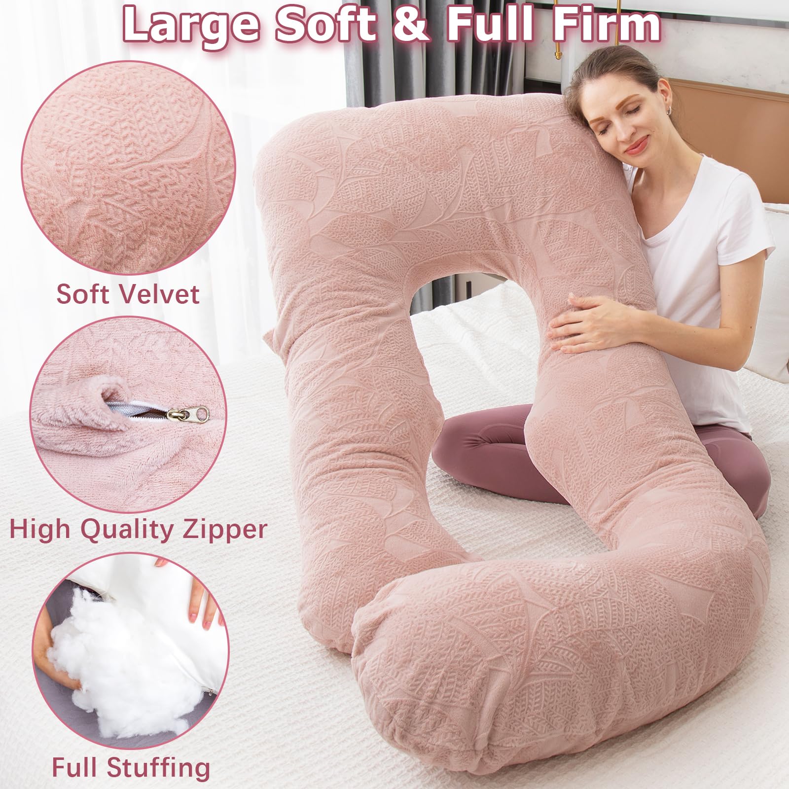 ERGONOMIC FULL BODY PILLOW: U-shaped design to embrace your body, reducing tossing and turning, and encouraging side sleep for expectant mothers