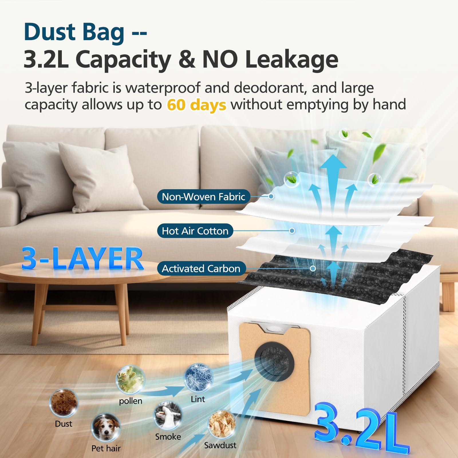 𝟯.𝟮𝗟 𝗗𝘂𝘀𝘁 𝗕𝗮𝗴: C10 Vacuum bags feature three-layer design with non-woven fabric, hot air cotton, and activated carbon. They have strong seal to ensure dust and debris do not escape once collected. 3.2L large capacity providing 60 days of hassle-free use with each dust bag