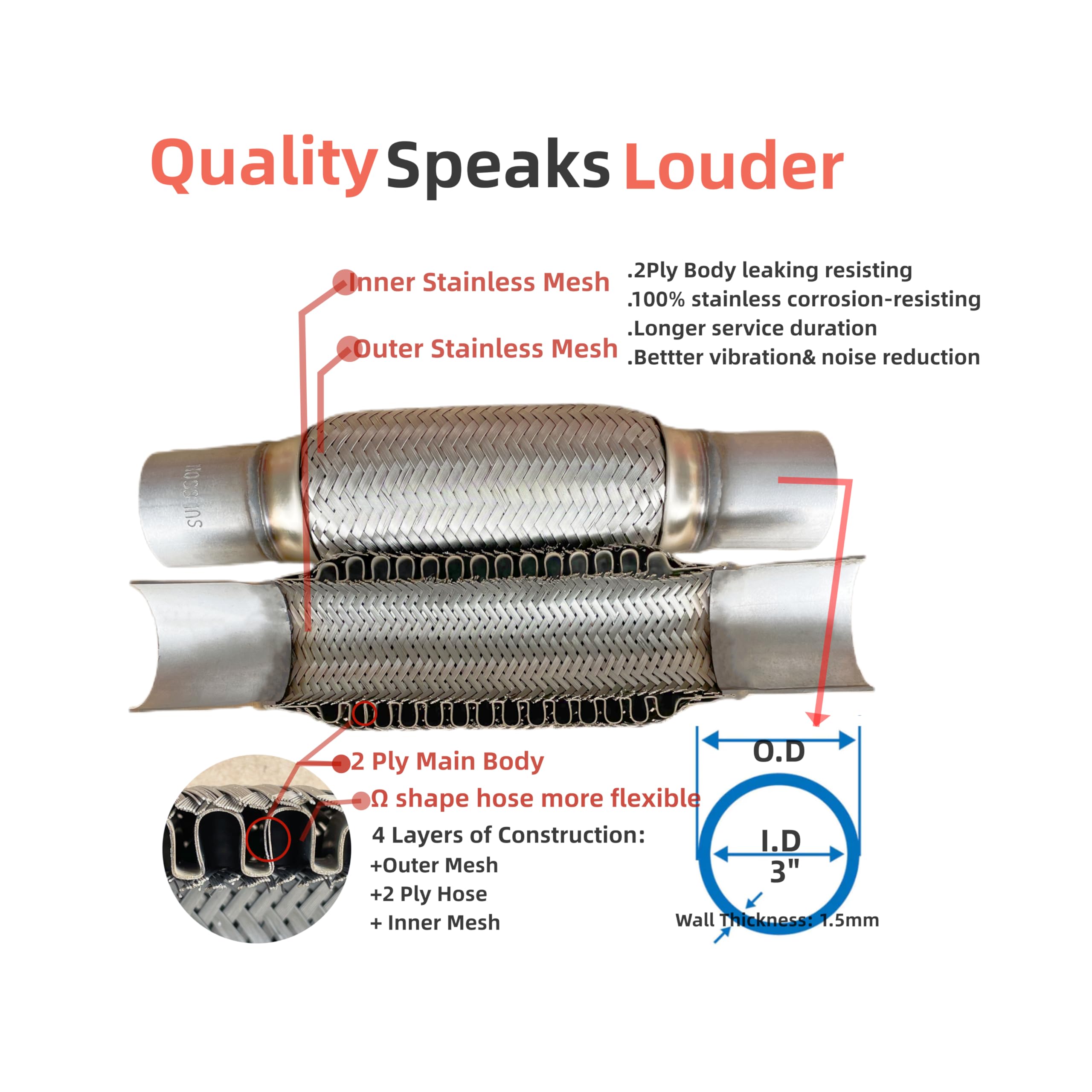 FUNCTION: Appropriate Flexibility to Reduce the Exhaust System Vibration & Noise. It Has a Longer Service Life.