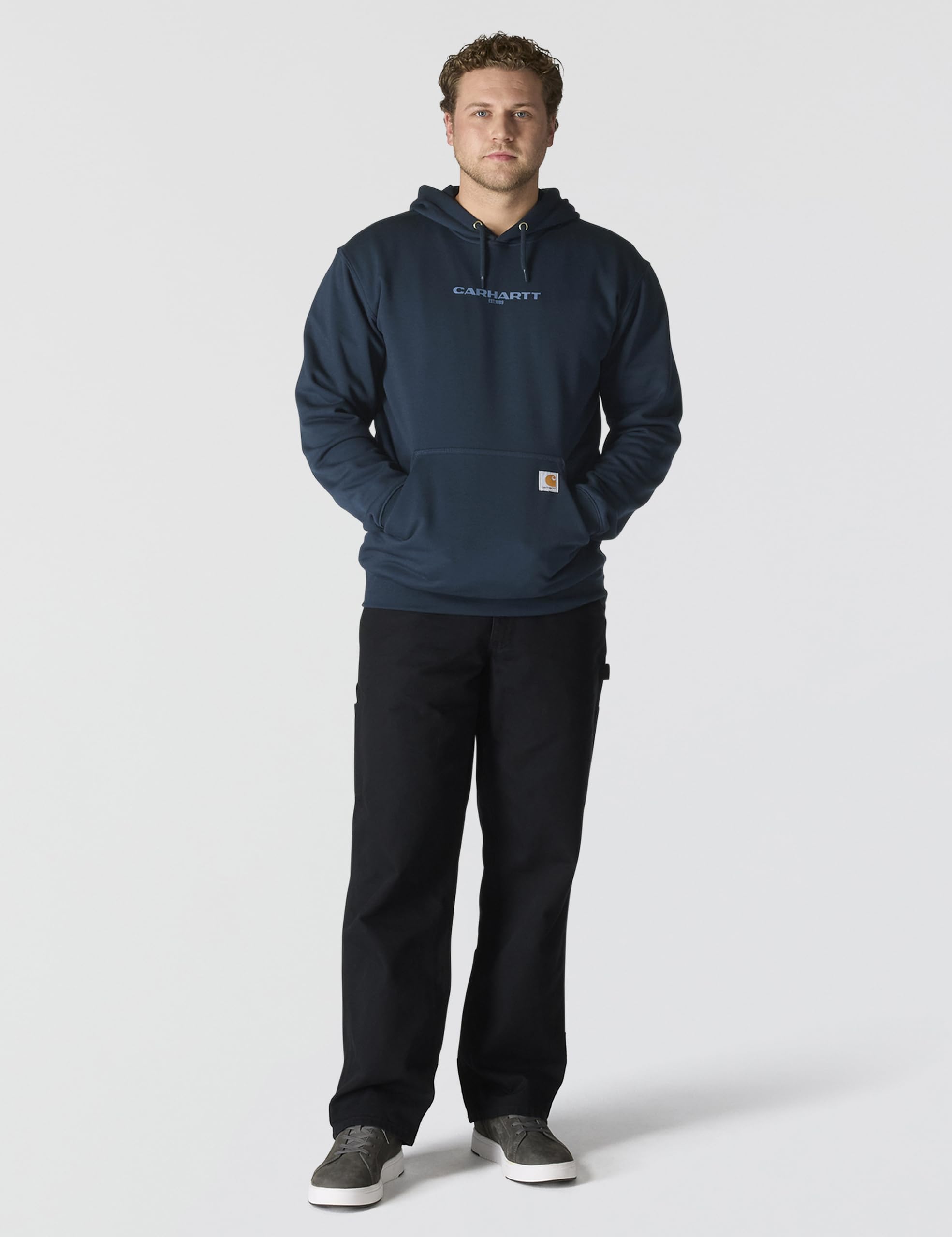 Front handwarmer pocket with sewn-on Carhartt label