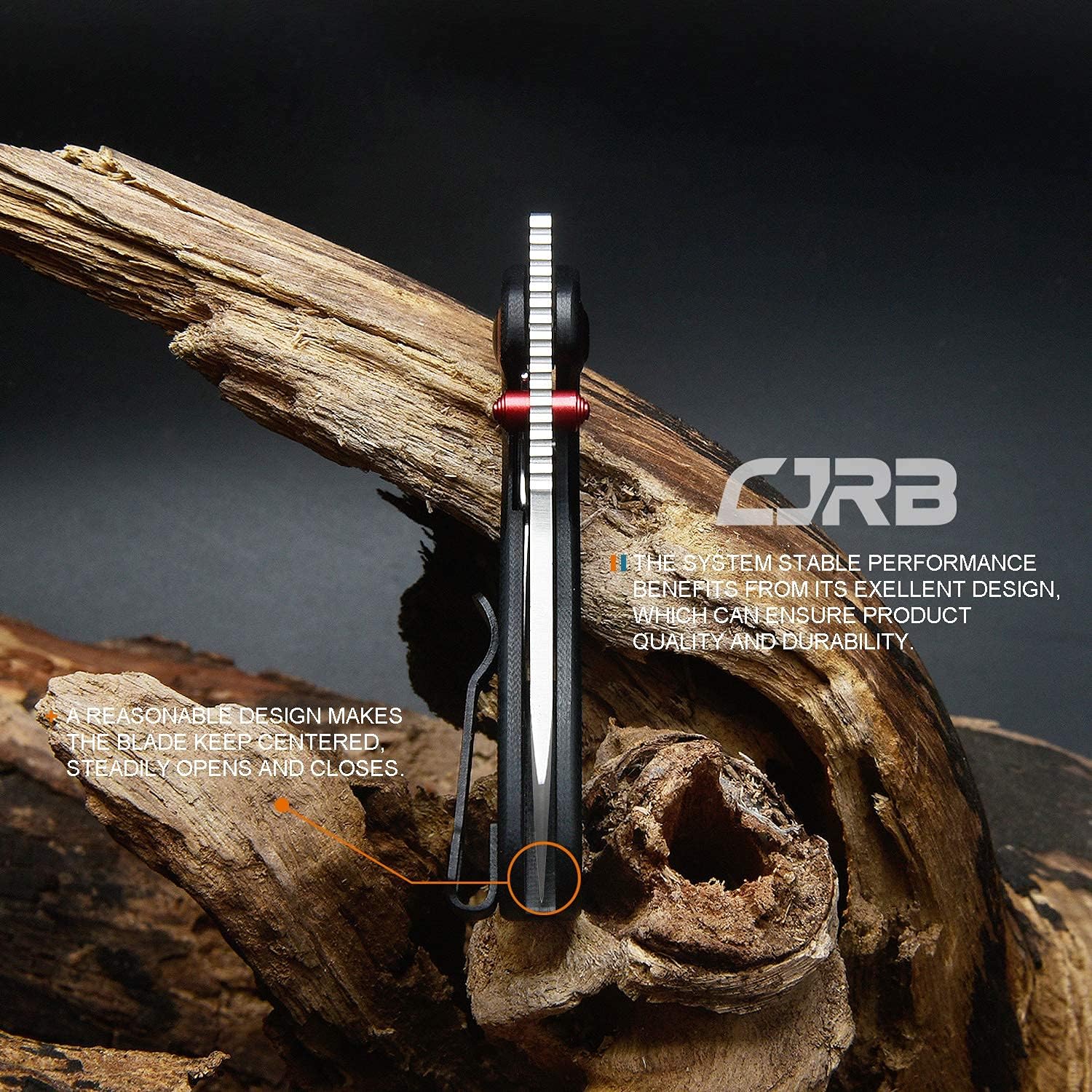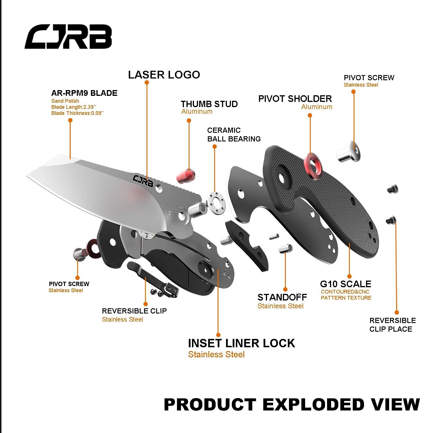Exceptional Blade Quality: This CJRB pocket knife boasts a premium AR-RPM9 steel construction, offering unparalleled edge retention and an extraordinary hardness of HRC59-61. This guarantees lasting durability and razor-sharp precision. Paired with a G10 handle renowned for its durability, moisture resistance, and temperature resilience, you'll experience unparalleled comfort and control. Its ergonomic design ensures effortless handling, even during prolonged use. From everyday tasks to demanding challenges, this pocket knife excels in versatility and reliability.