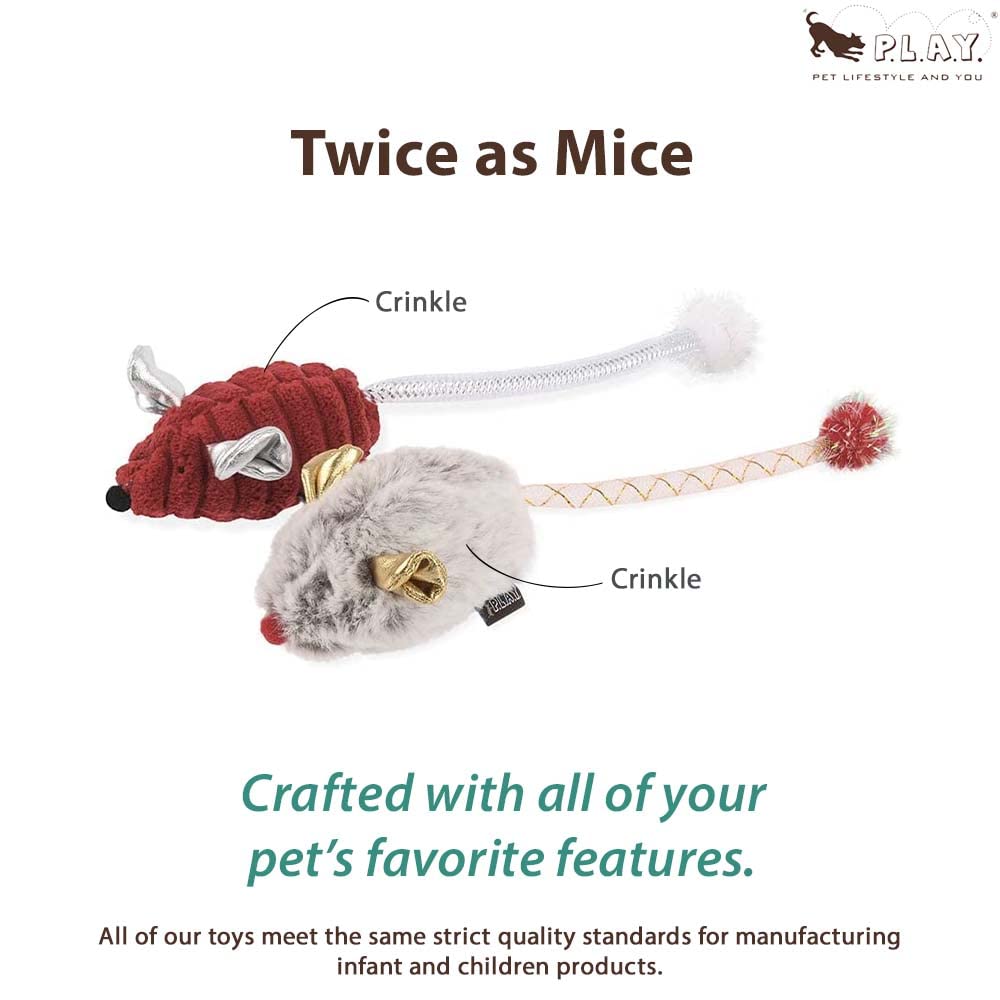 Hours of Fun: Let you furry friend live on the "wild" side with our Feline Frenzy Critter collection! They'll love this set of 2 Twice as Mice fun mouse toys, filled with certified organic catnip and packed with amusing crinkles. The purrfect way to spice up play time!