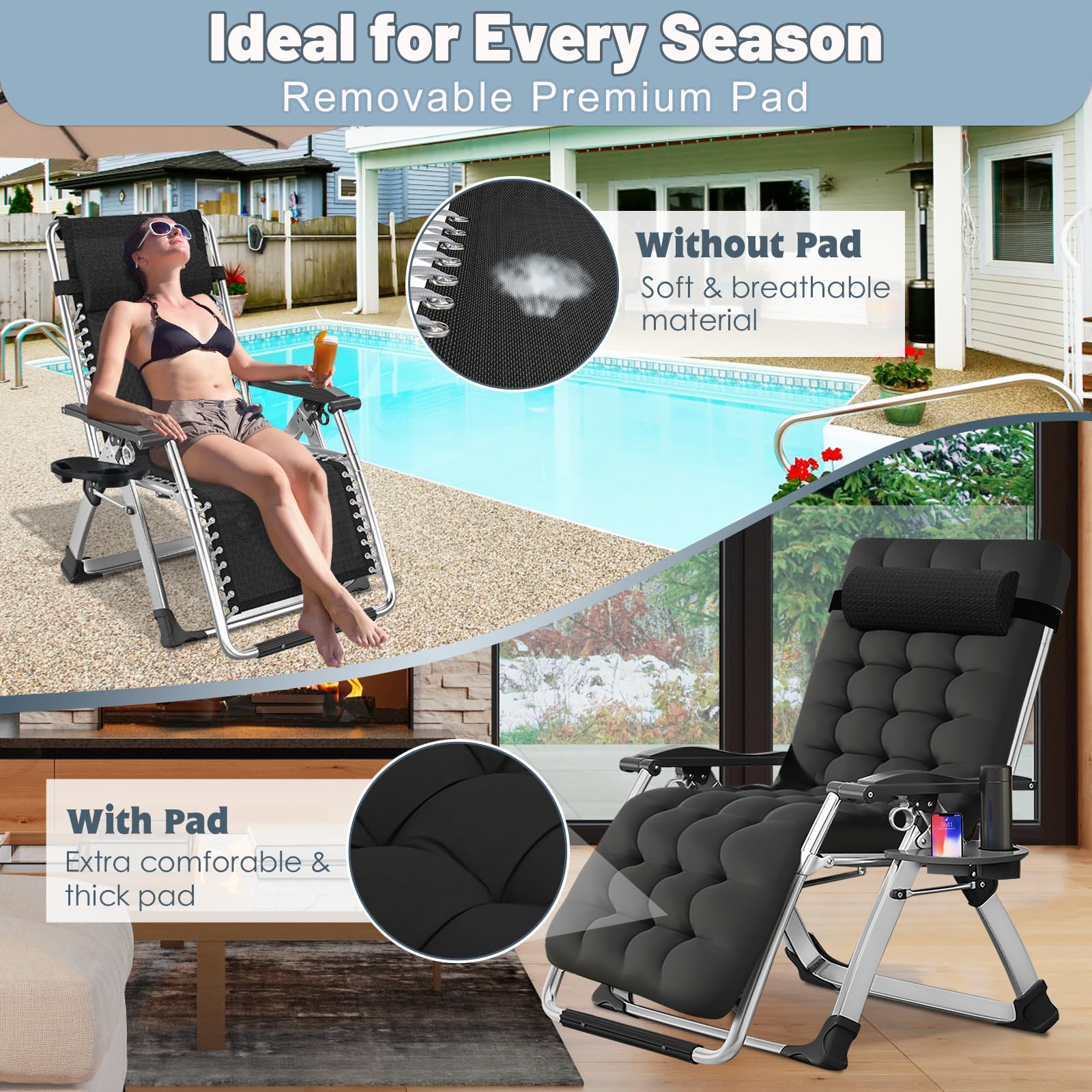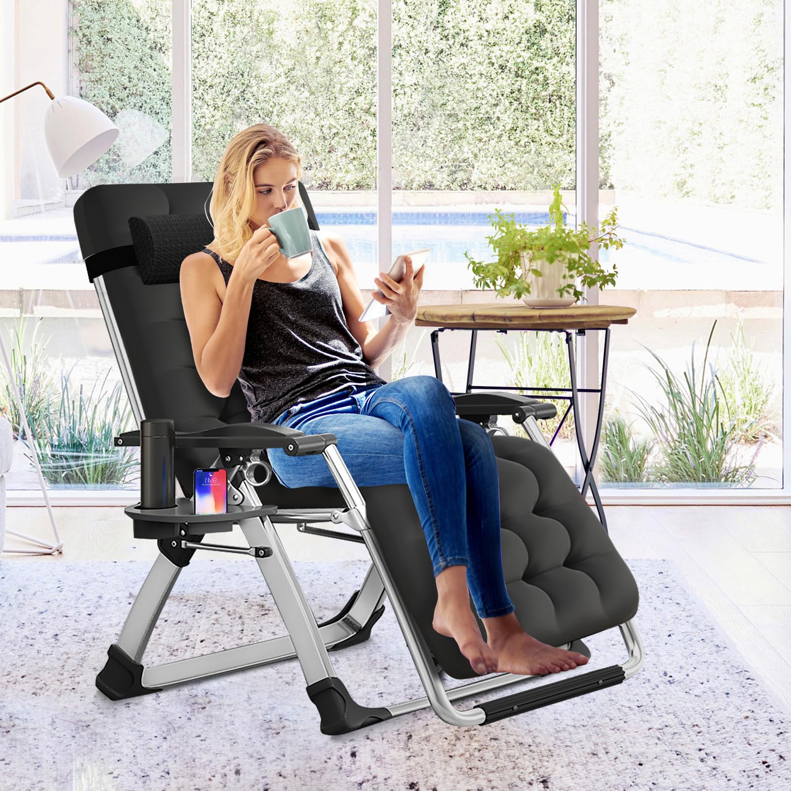 Comfortable Design: The outdoor zero gravity lounge chair is designed to satisfy your ultimate comfort. The armrest of folding lounge chair is thick and contoured. It will serve you whether sitting or lying, outdoor and indoor. Our recliner chair comes with a thick and soft pad