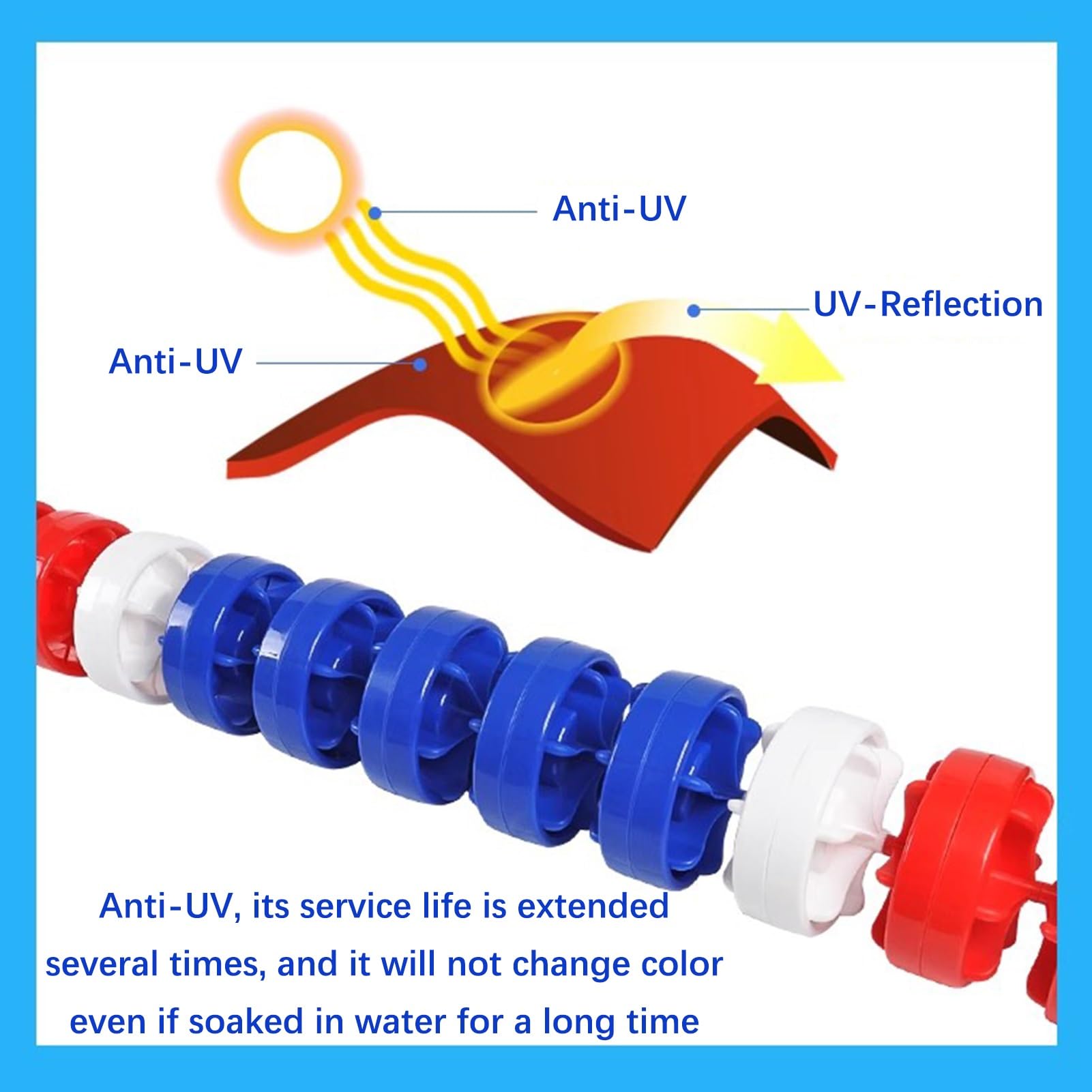 Product Parameters: 1m/3.3ft safety buoy line has 8 buoys, each buoy length: 12.5cm/4.9 inch, width: 12cm/4.72 inch; 15cm/5.9 inch. Our safety ropes are available in rich colors for easy identification in the water and provide visual cues to reduce hazards
