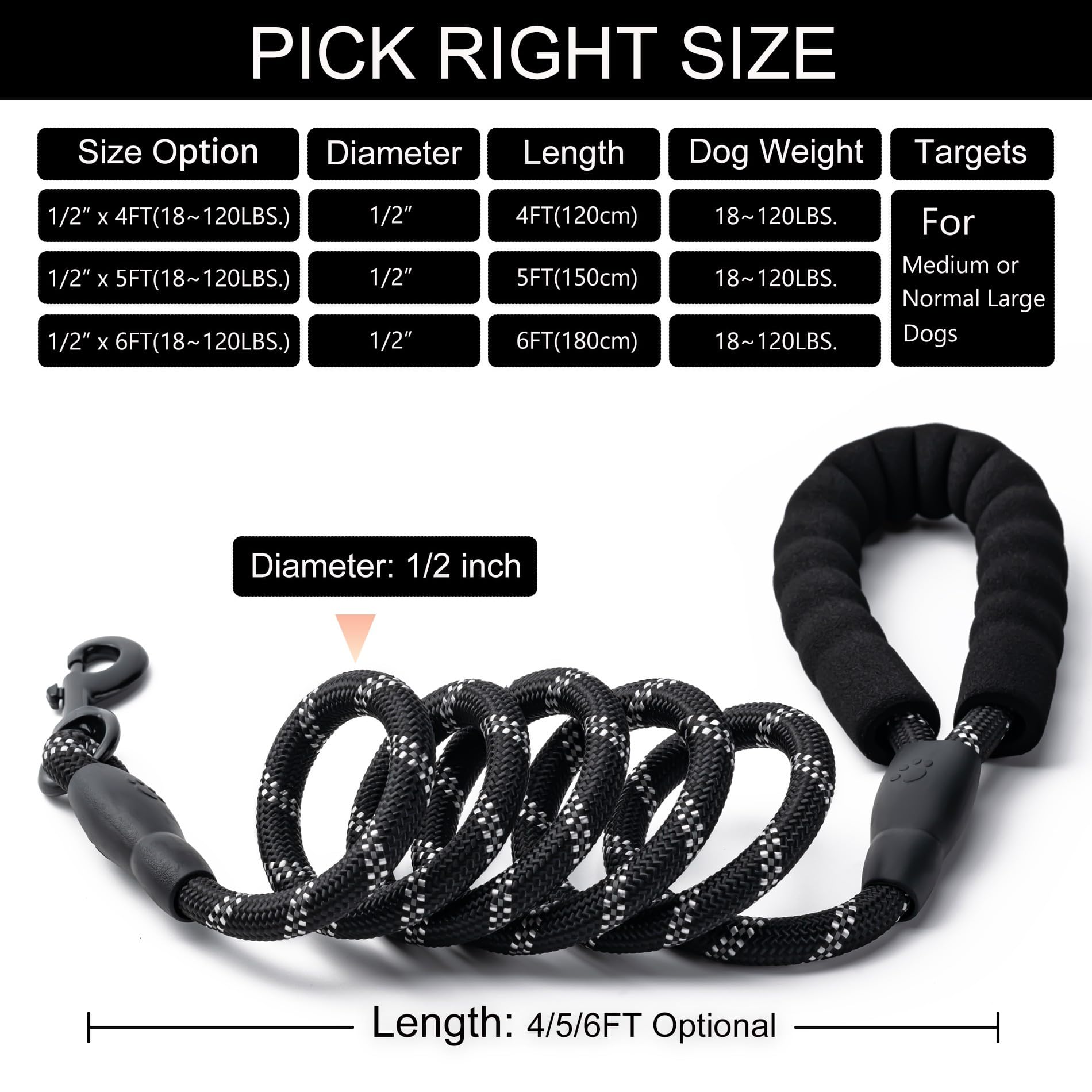 【4/5/6 FT Training Leash】2 Pack Pet Leashes comes in a variety of lengths and widths to accommodate all breeds. It's the best choice for training leashes for large dogs or medium dogs, give enough freedom to your dog and everythin.