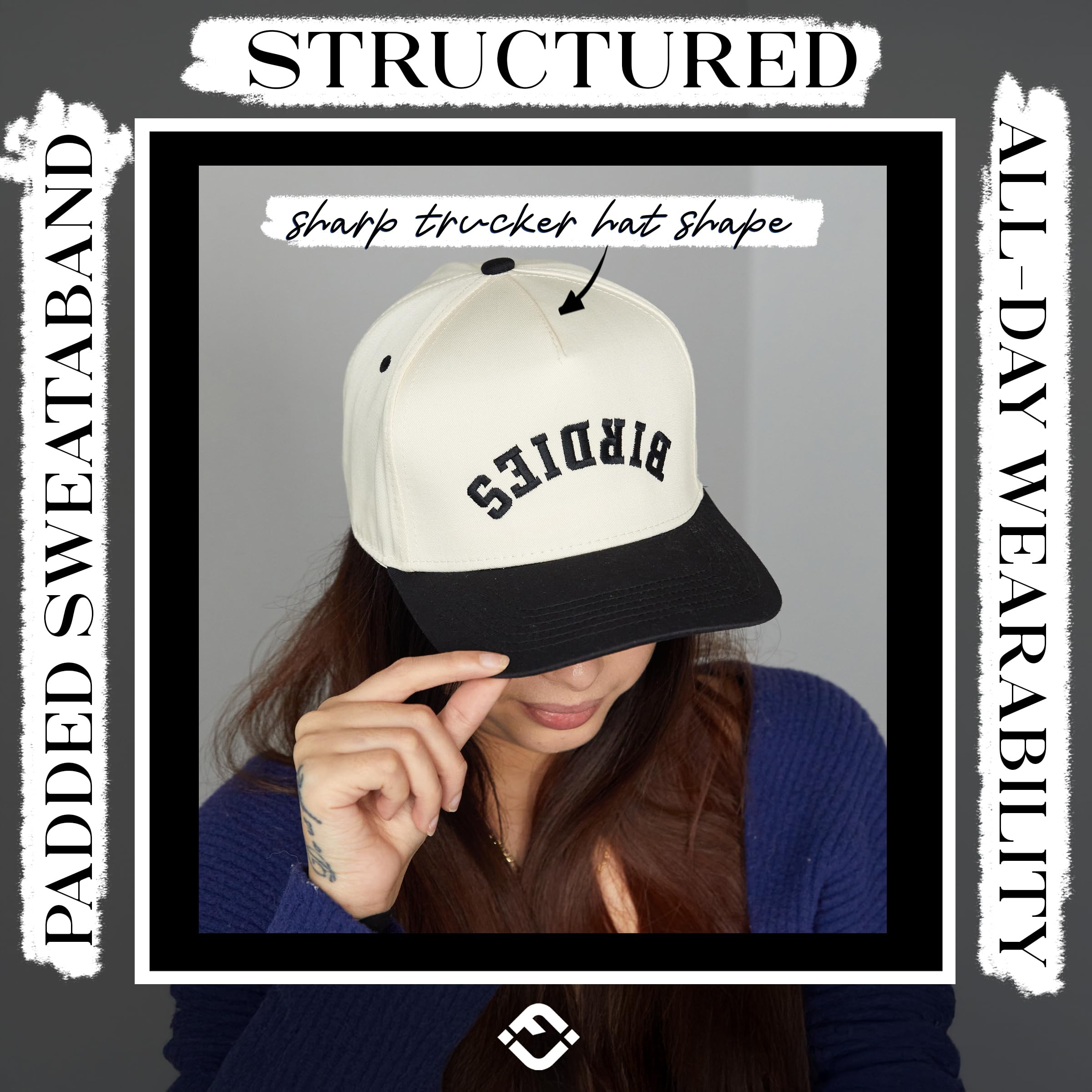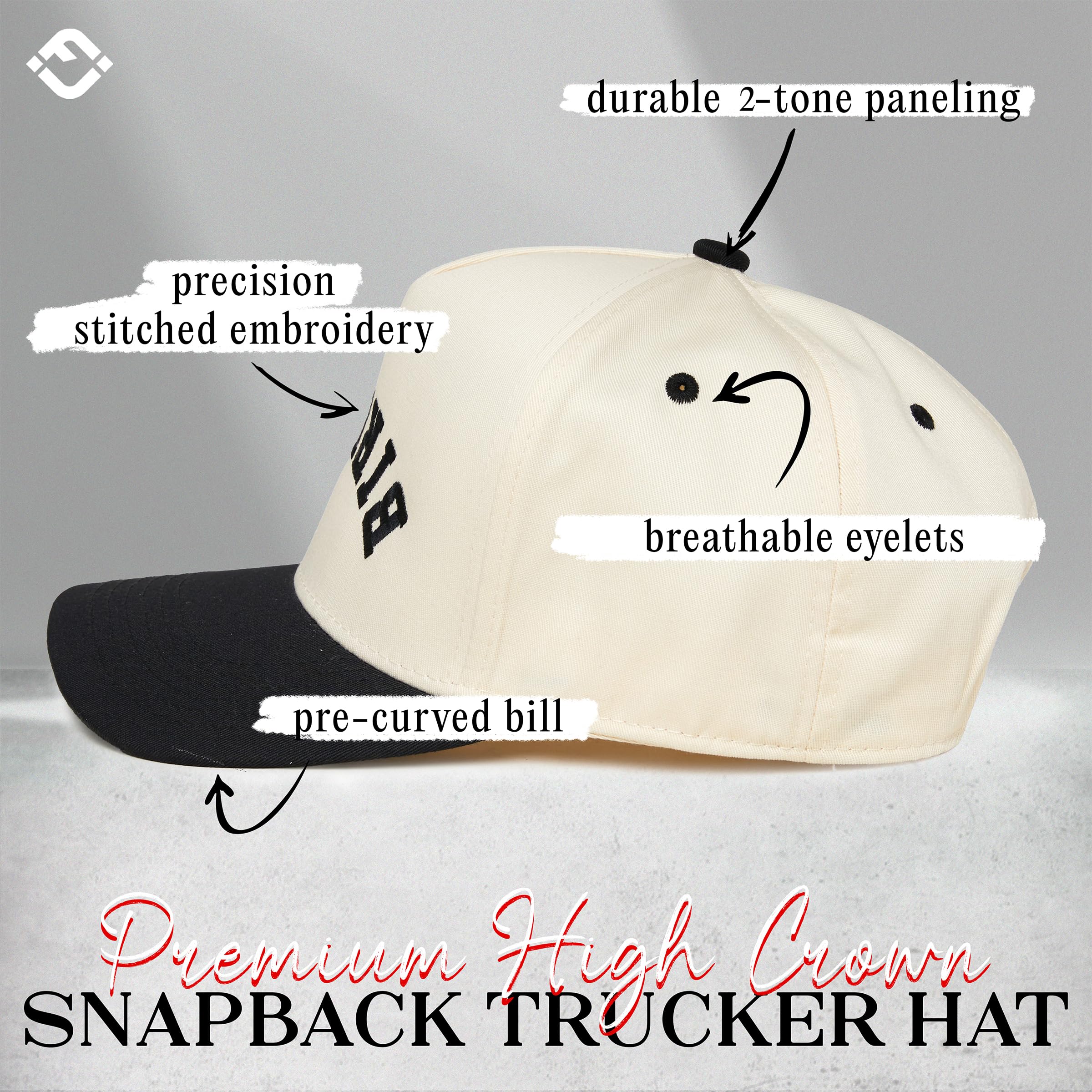 GREAT QUALITY: These two-tone retro baseball caps are 35% cotton and 65% polyester, ensuring a soft, comfortable fit, while also providing durability and breathability. This 5 panel structured hat boast high-quality, detailed embroidery designs, adding a touch of elegance and sophistication to any occasion. Despite their structured design, these hats offer a lightweight feel that contributes to their comfort and suitability for extended wear. Hand wash only.