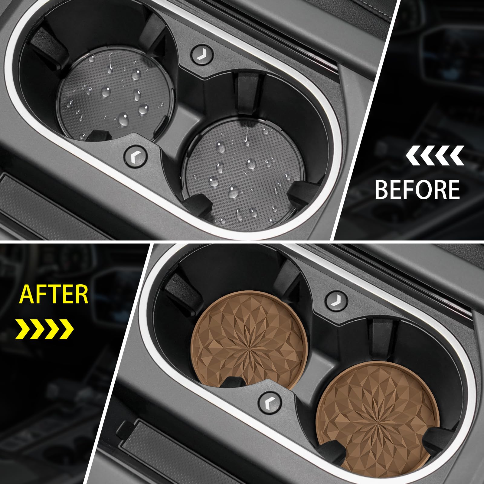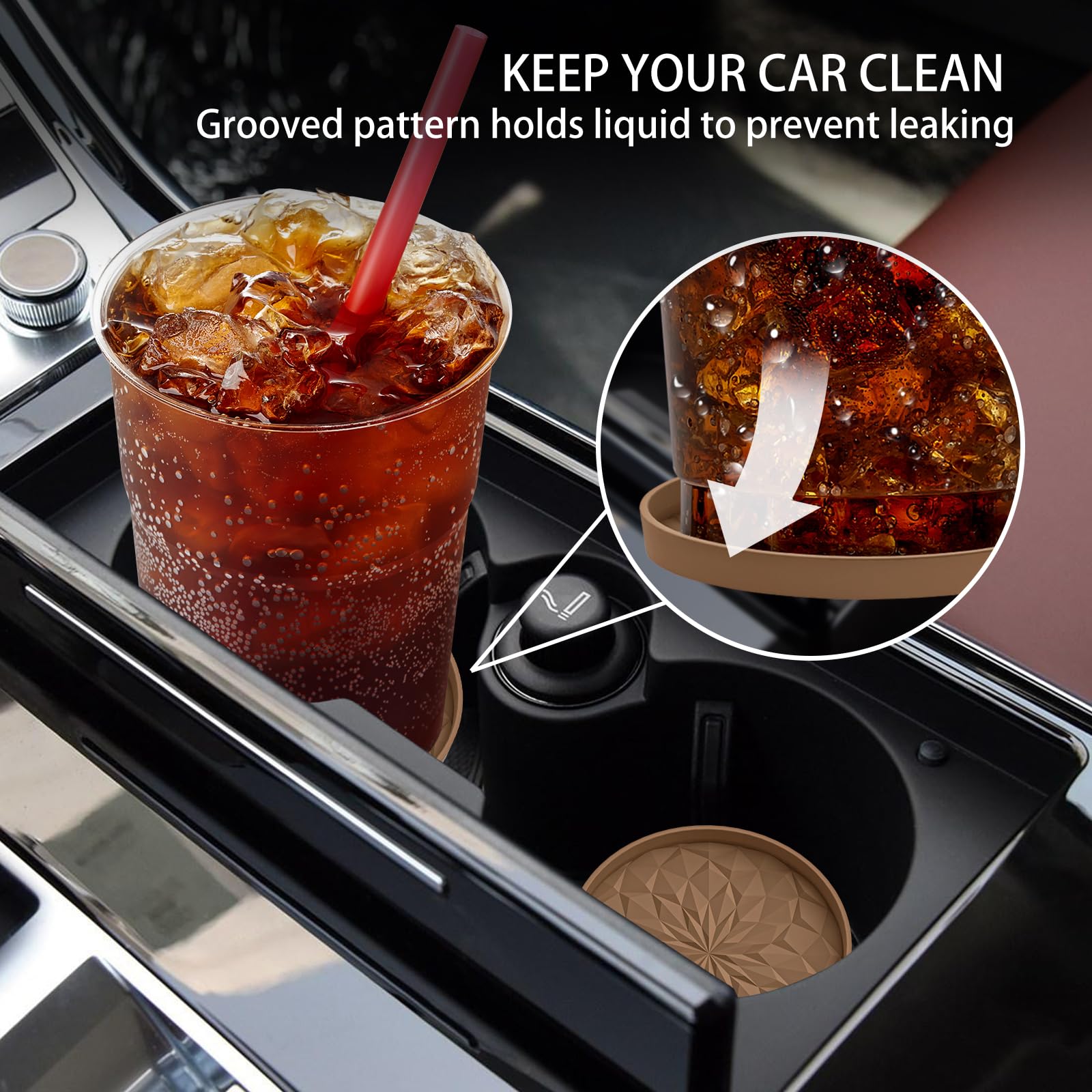 LONG-TERM USE & HEAT RESISTANT & DISHWASHER AVAILABLE: The car coasters are made of food grade silicone, soft & flexible. Heat resistant range from -40F to 480F, can be used for cold or hot drinks in car. If it gets dirty, just throw it in the dishwasher.