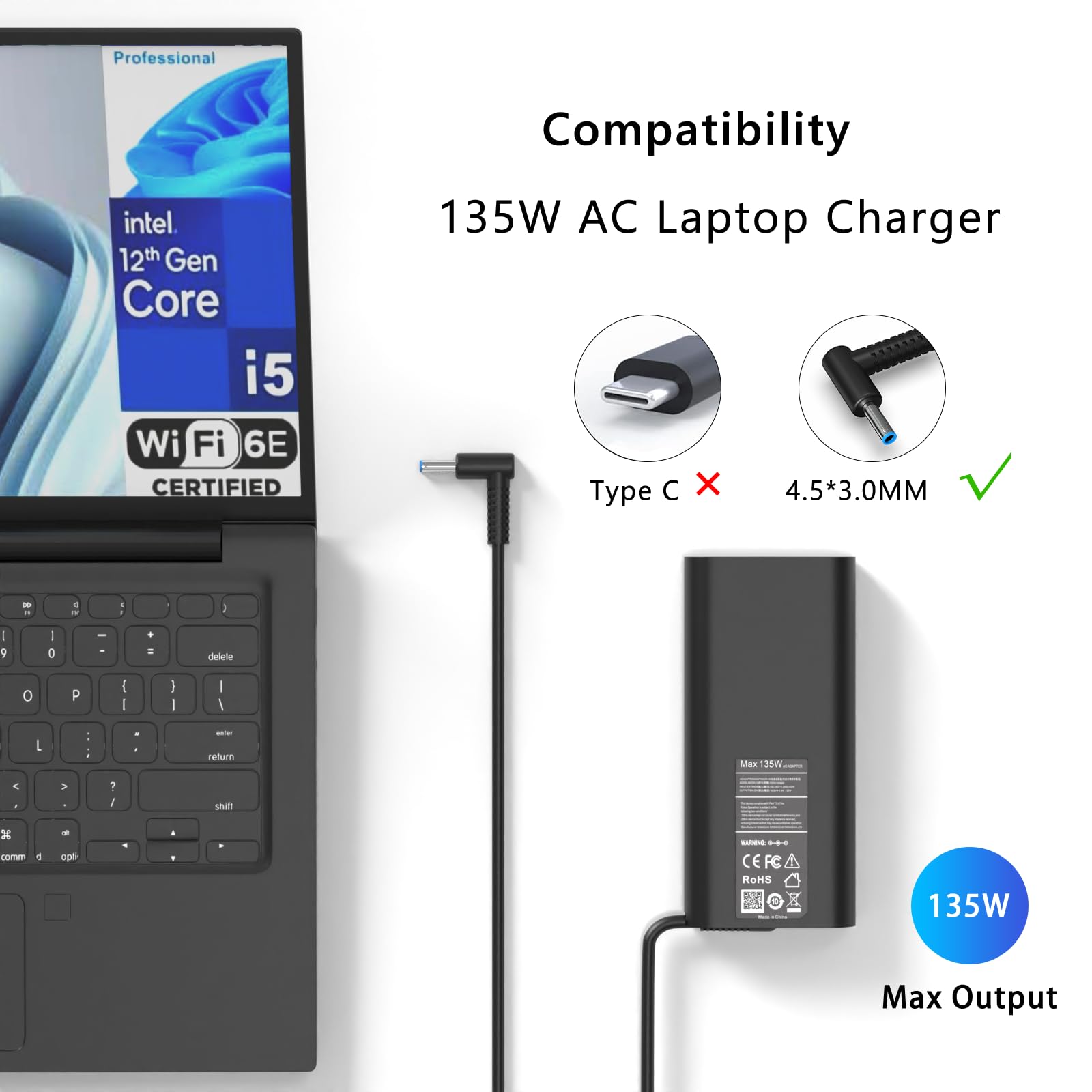 GERVGHS 135W laptop charger Compatible with HP Part Number: L15534-001 TPN-DA11 TPN-CA13 917649-850 A135A012P ADP-135MB-B L15879-002 L15879-003
