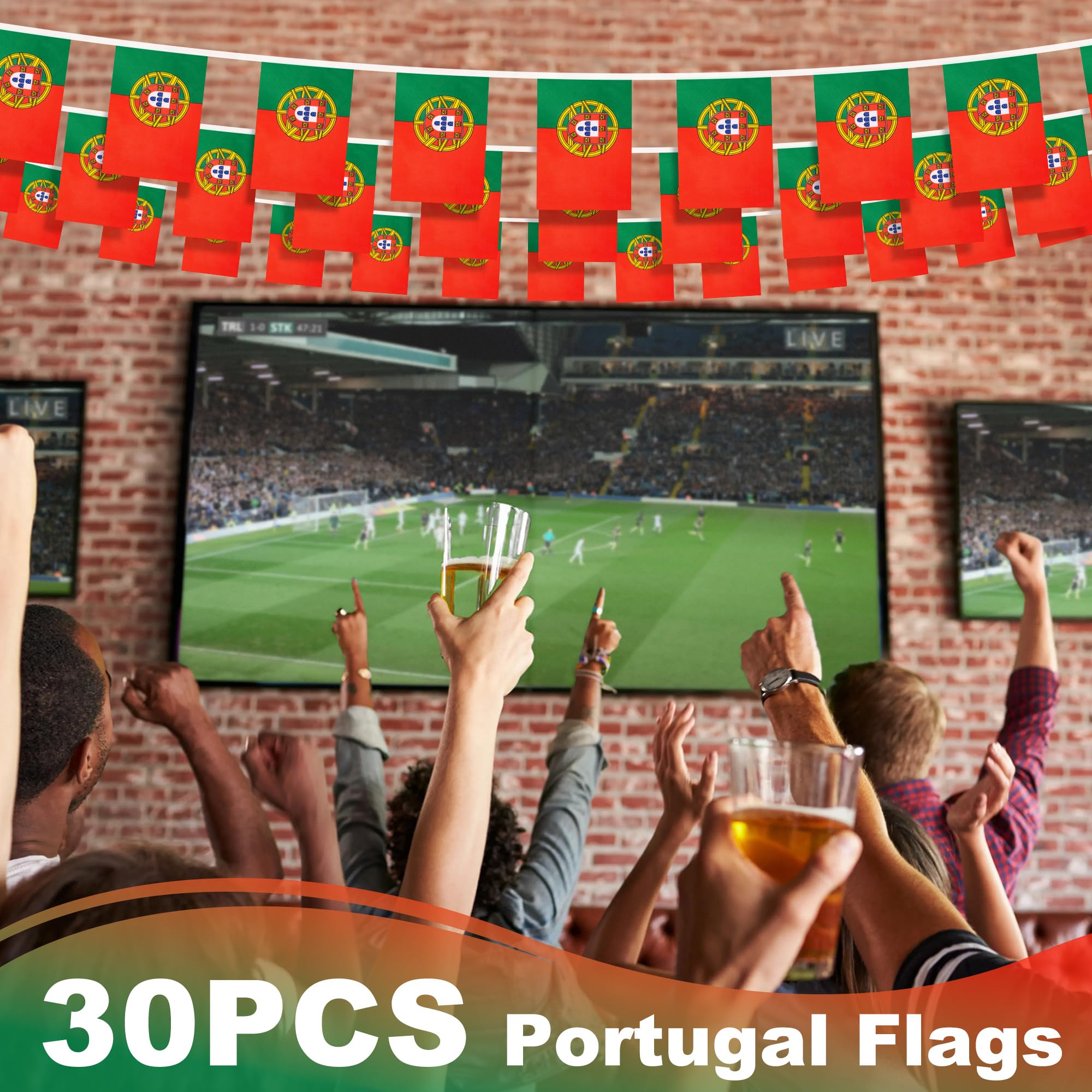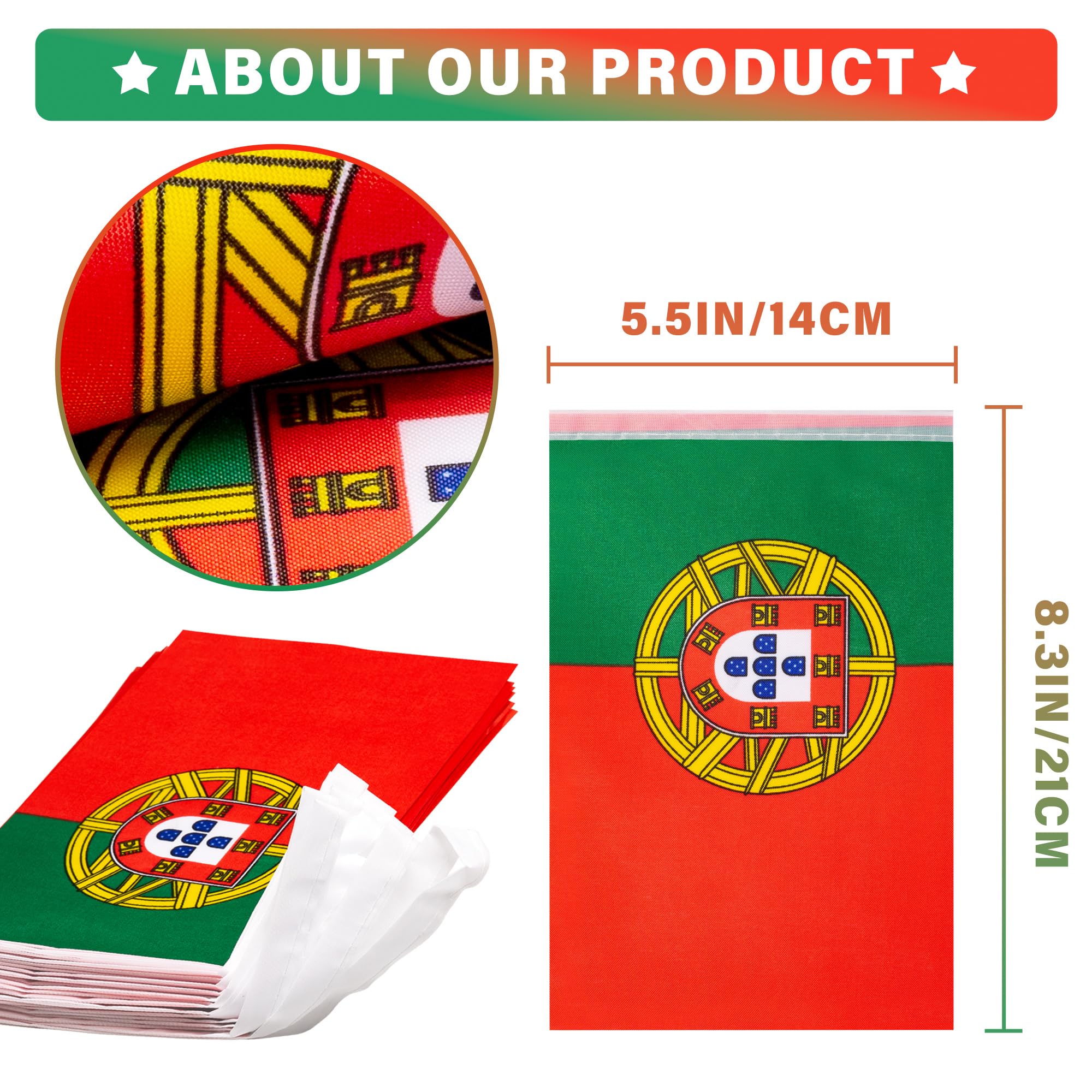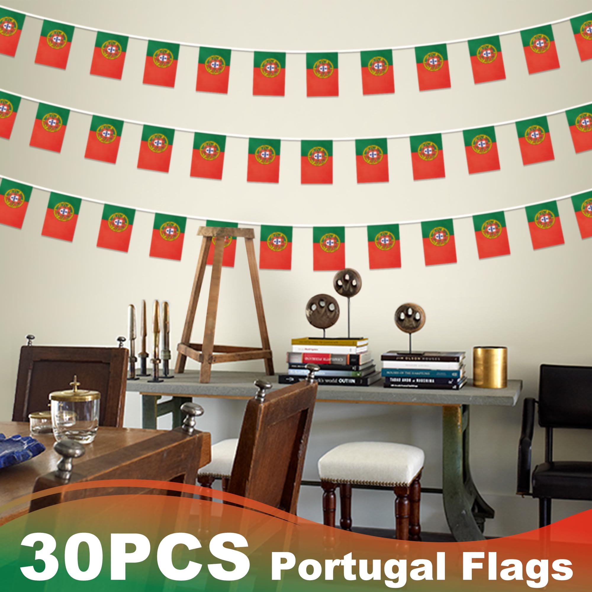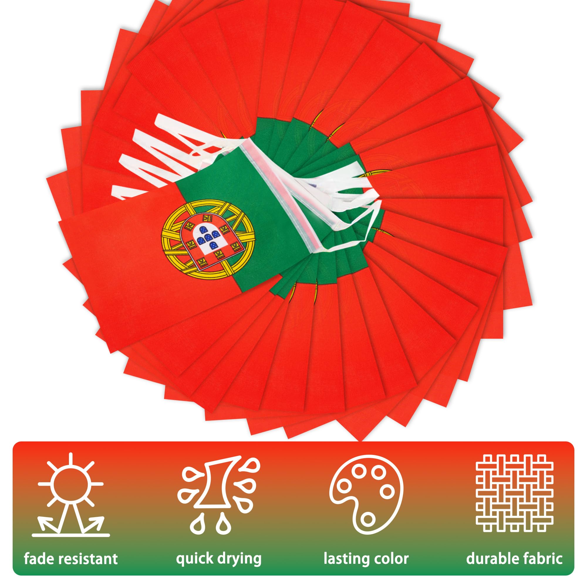 【Specifications】Each string is approximately 33 feet long. Includes 30 pcs Portuguese flags. Each flag is approximately 5.5 in wide and 8.2 in long.