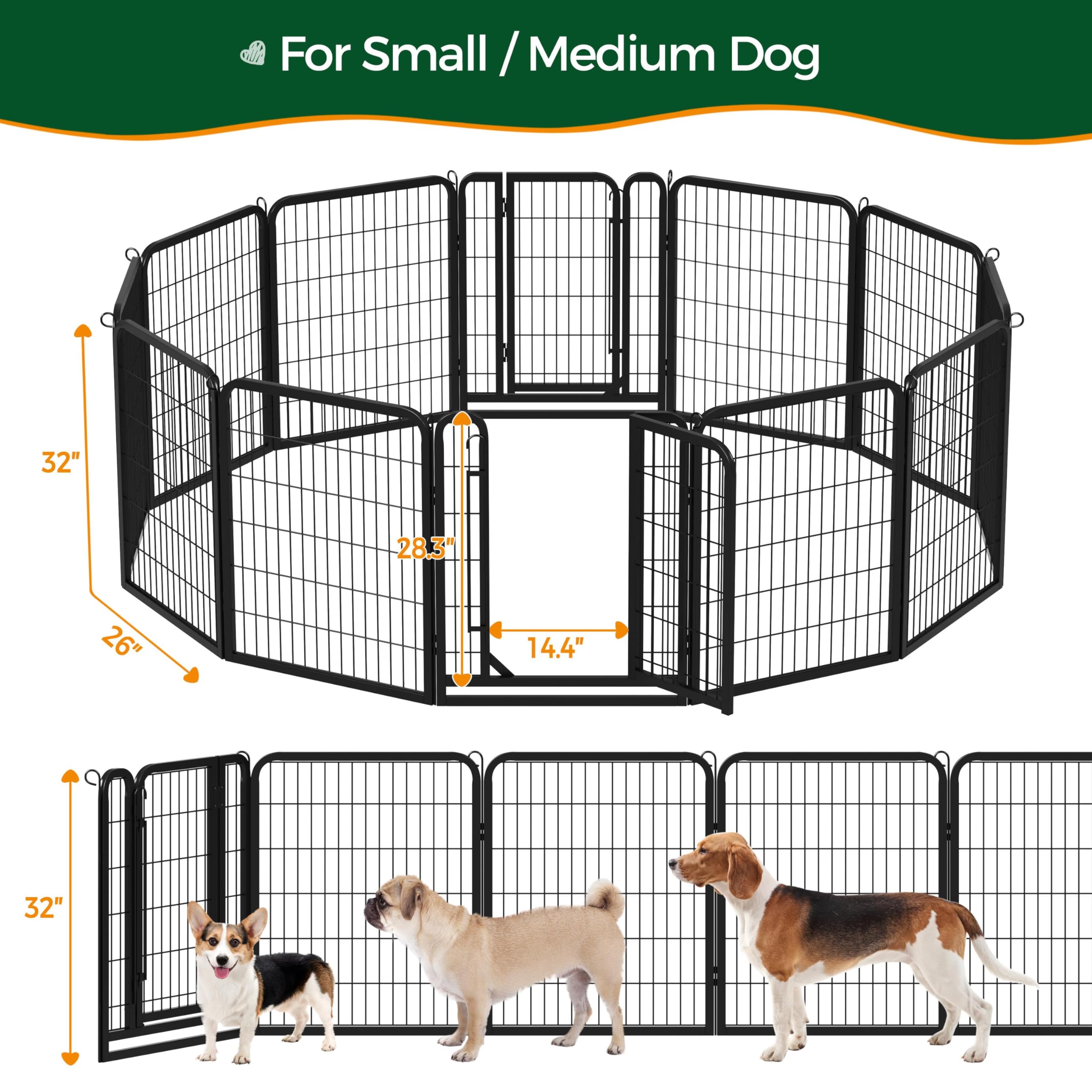 Practical Pet Playpen: This dog playpen is crafted from durable metal, ensuring longevity and robustness. Its versatile design makes it suitable for indoor and outdoor activities, including RV camping, traveling, and yard endeavors. Additionally, it can be utilized to restrict your pets' exercise area or as a way to separate multiple pets