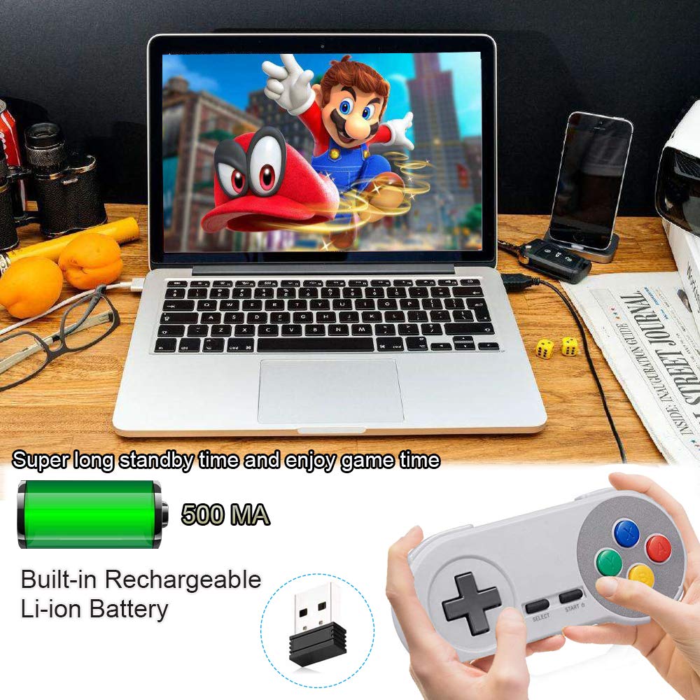 ♻ Wide Compatibility---Wireless USB controller is mainly designed for playing classic old school retro SNES /NES emulated games on computer or laptop,compatible with Windows PC, MacOS, Raspberry pi. PC running operating system:Windows 98/2000/ ME/XP/Vista/Win7/8/8.1/10/11 or later, or Mac running OS X 10.0 or later.