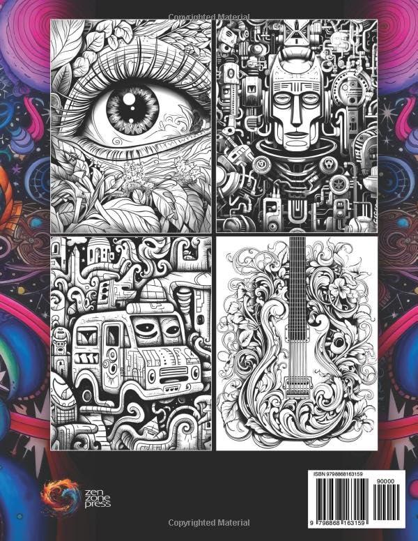 Ditch the Unicorns and Fairies! Forget Fuffy Bunnies and Sugarplum Dreams! This ain't your grandma's coloring book. Buckle up for a mind-blowing adventure through 40 unique illustrations that defy convention and unleash your inner creative warrior. The masterminds at Zen Zone Press have creatively coded a coloring experience unlike any other. We're talking: Robots that rule, not rust. Man caves that redefine relaxation. Geometric patterns that'll warp your reality. Alien landscapes that scream "Out of this world!" Abstract art that'll challenge your perception. Tribal designs that pulse with raw energy. Badass animals that'll make you roar with delight. Complex machines that'll ignite your inner engineer. Hours of colored pencil paradise: Stock up, because you'll be coloring for days! Extra left margin: No more hand cramps, just pure coloring bliss. Travel-friendly: Take your coloring adventure anywhere! The perfect gift: Blow someone's mind with this unique and unforgettable coloring experience. Unleash your stress, unleash your creativity, unleash the full spectrum of your imagination. These intricate, one-of-a-kind designs will push your coloring skills to the limit, leaving you feeling centered, and inspired.