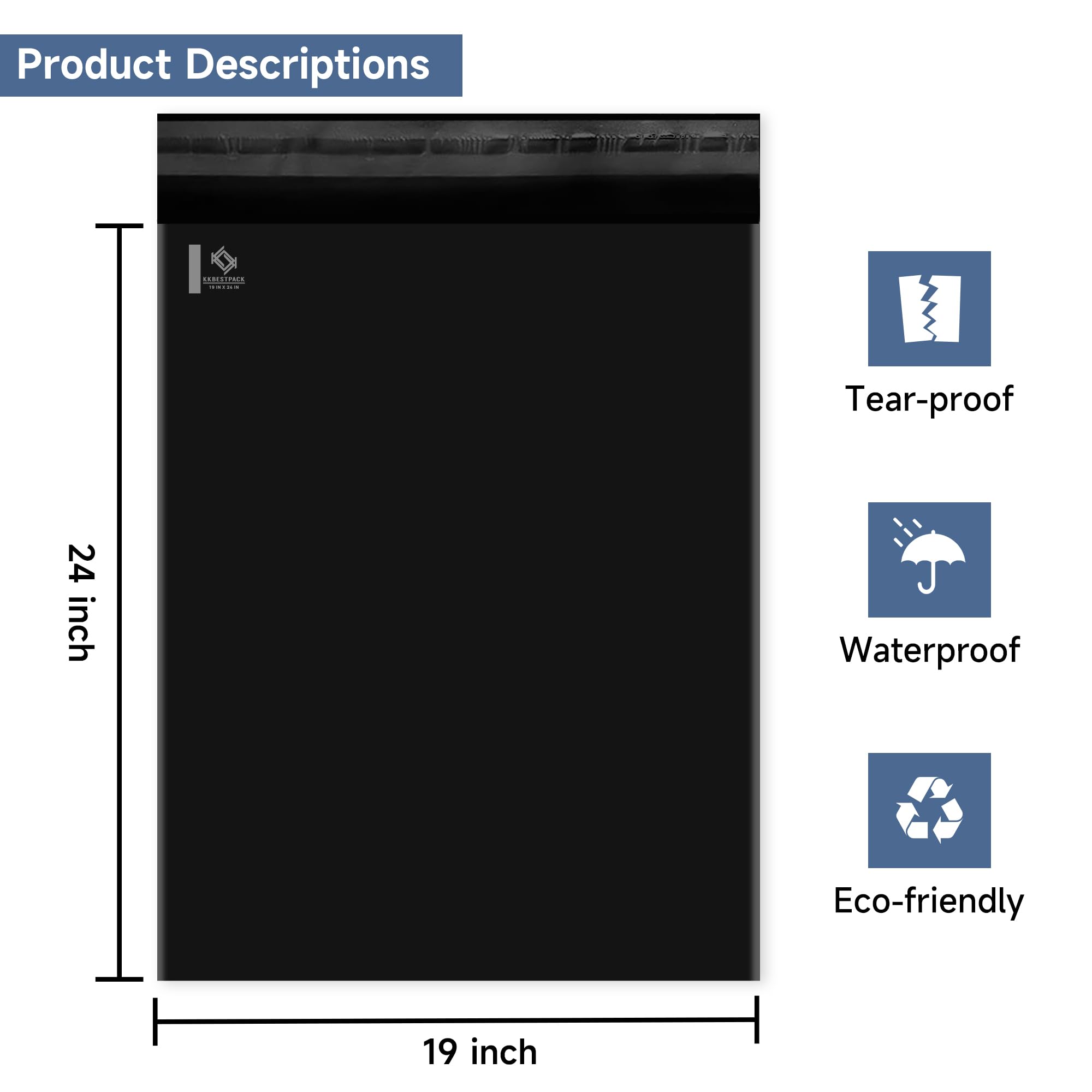 Reliable Shipping Solution Streamline your fulfillment process with KKBESTPACK Black Poly Mailer Bags—ideal for shipping soft, non-fragile items like apparel, towels, and textiles. Lightweight yet durable, these weather-resistant mailers are self-sealing in seconds, helping you pack faster and ship with confidence. Durable, Discreet & Professional Crafted with 3-layer polyethylene material, our black shipping bags are waterproof, tear-resistant, and puncture-resistant. The sleek black exterior enhances privacy by concealing contents and adds a polished, professional look to your packaging. Reinforced seams provide added strength for overstuffed shipments like clothing or linens. Smart Packaging for Small Businesses Compared to bulky boxes, KKBESTPACK mailers save space, cut shipping costs, and simplify storage. They are perfect for small business owners and e-commerce sellers who need reliable, fast, and protective shipping supplies that make a great impression on customers. Trusted by Growing Brands At KKBESTPACK, we’re committed to supporting your business with high-performance packaging solutions. Protect every order from dirt, moisture, and damage—so your products arrive clean and secure, turning new buyers into repeat customers.