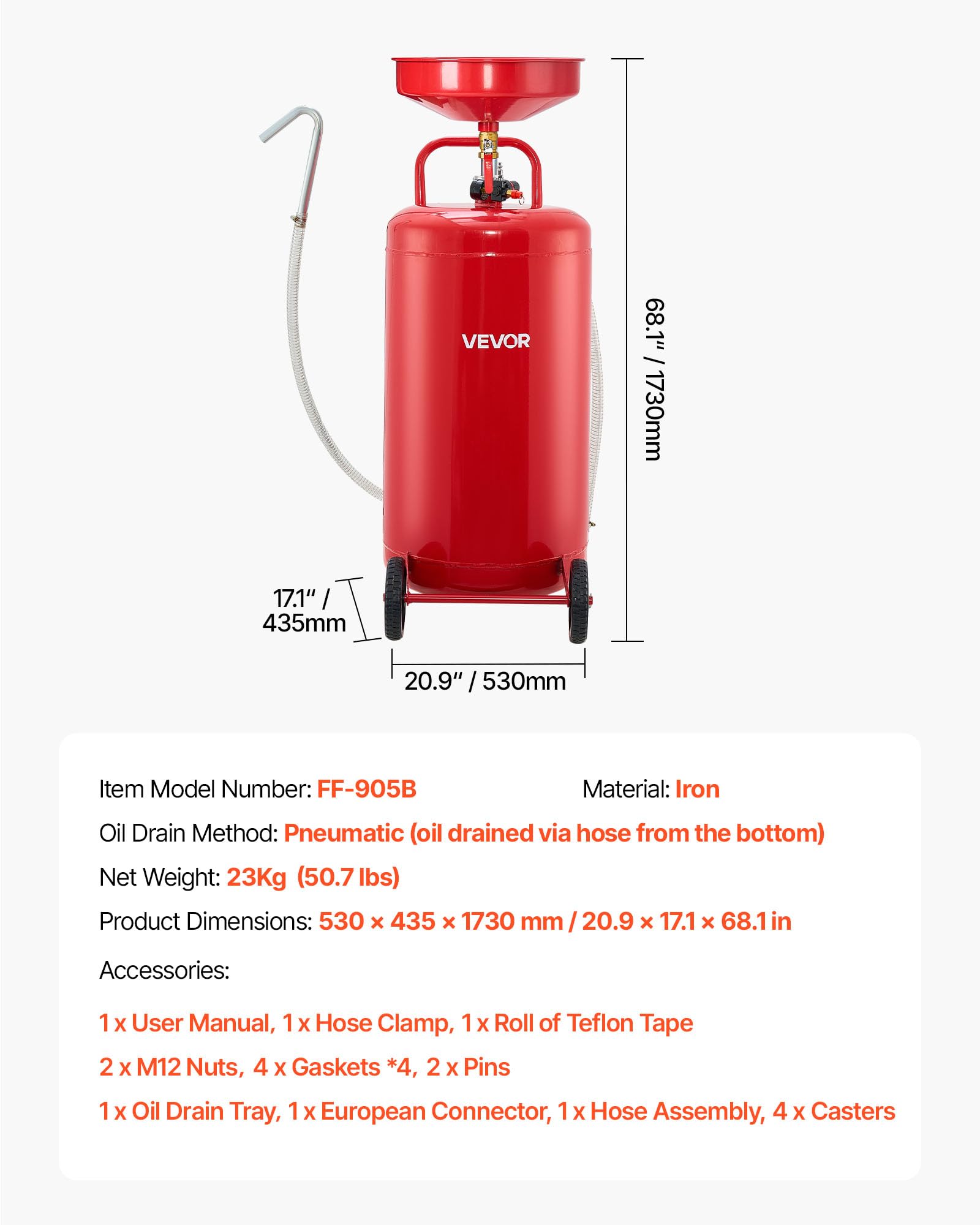 Durable and Reliable: Built with a powder-coated metal tank that resists impact and corrosion, this drainer oil change tank offers exceptional durability, ensuring long-lasting performance and cutting down on replacement costs