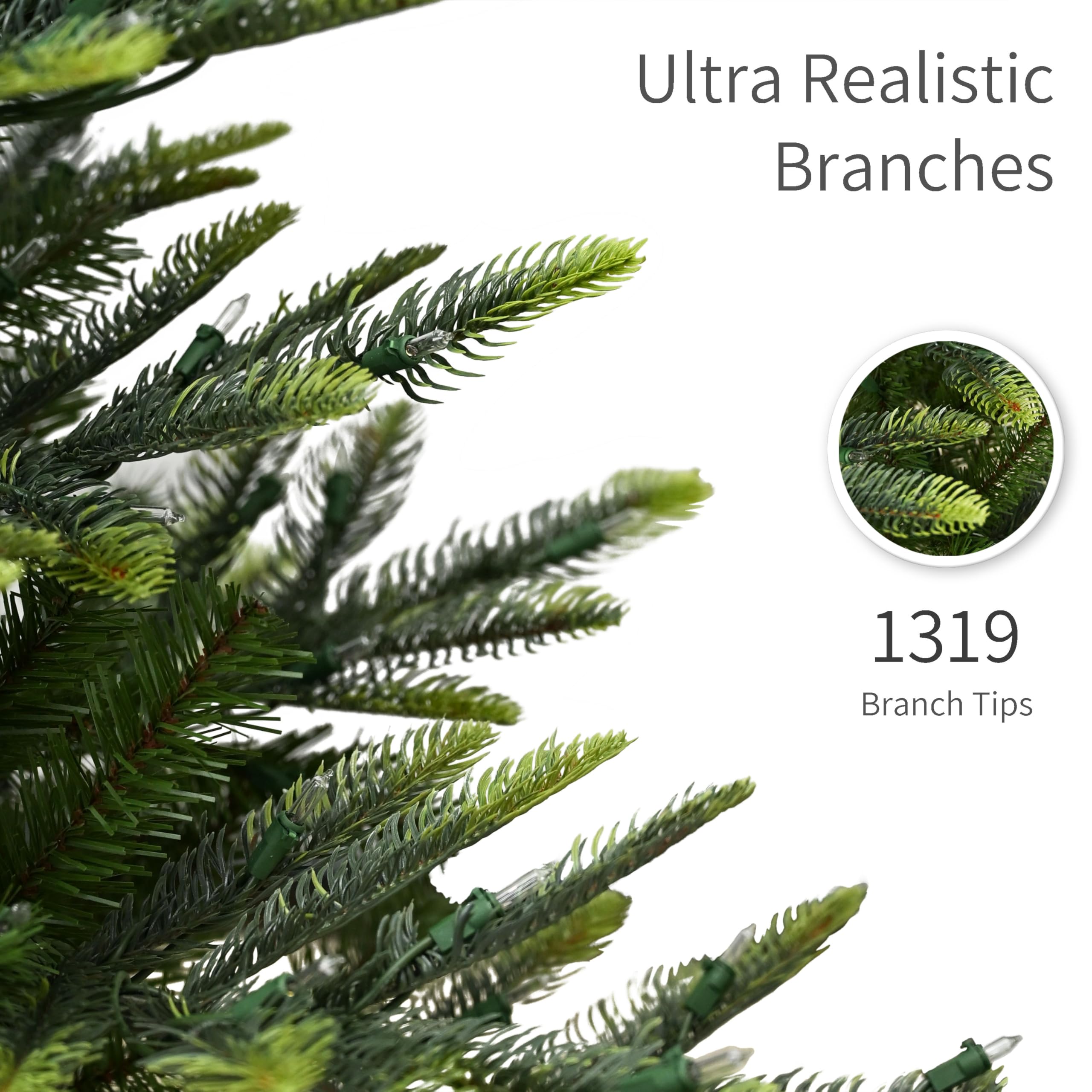 Realistic Decorative Branch Tips: Features 1319 molded PVC interior branch tips for a lush, natural silhouette, perfect for your Christmas tree decorations and realistic decorative displays
