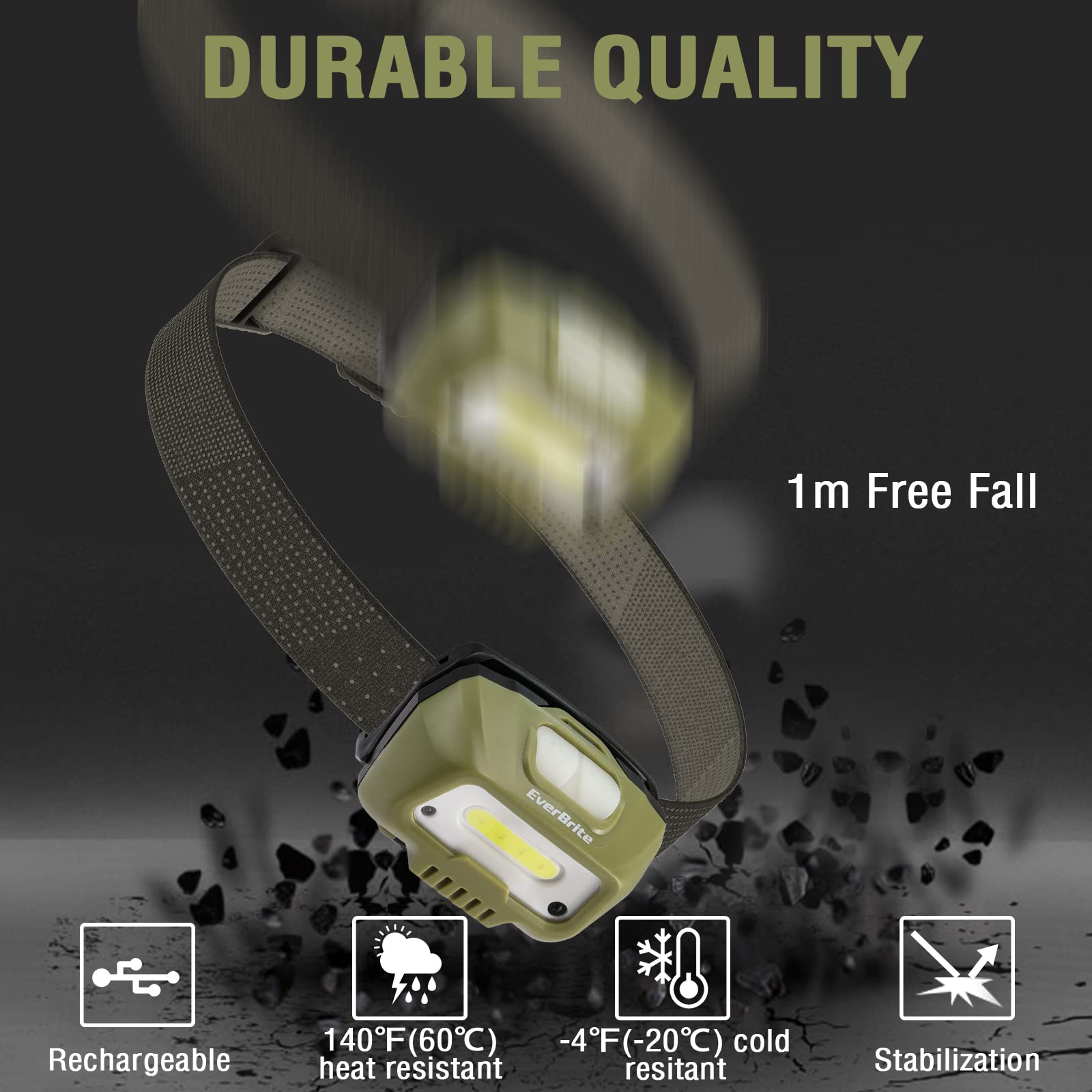 Multiple Applications & Extreme temperature resistance: Everbrite headlamps have good resistance to extreme temperatures which is -4℉(-20℃) to 40℉(60℃) Temperature Resistant, excellent temperature resistance allows you to use this headlight in a variety of temperature occasions, whether it is a hot workshop or an extremely cold mountain top, everbrite headlamps can always by your side. Note: Do not turn on the light while the headlamp is charging