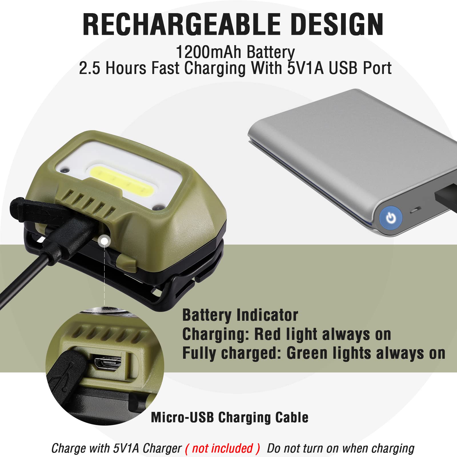 Rechargeable & Charging Indicator: EverBrite headlamp is equipped with a 1200mAh rechargeable lithium battery, which can last for a long time. The package comes with a Micro-USB charging cable, which is convenient to charge at any time with 5V 1A input, such as a power bank, computer USB socket, car USB socket, etc., without worrying about running out of electricity. The charging indicator can clearly show the status of the battery when charging