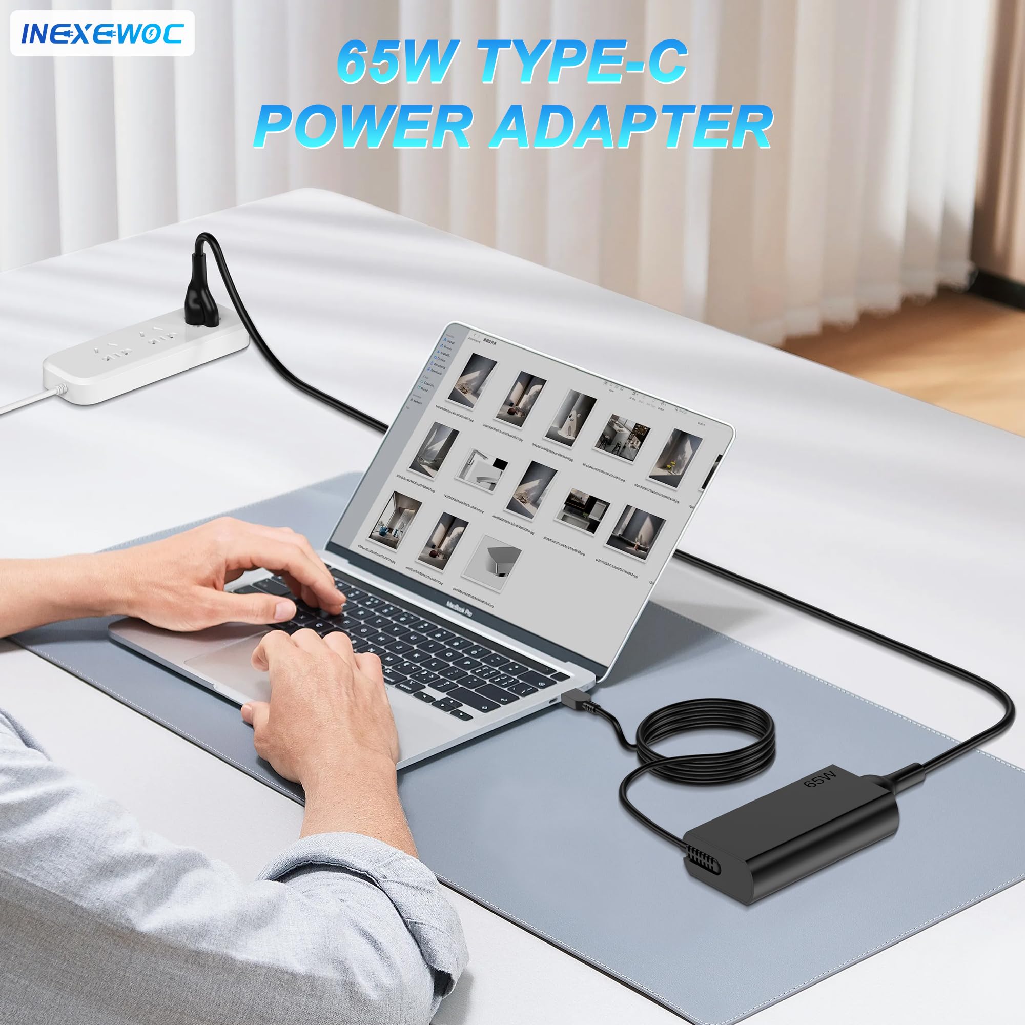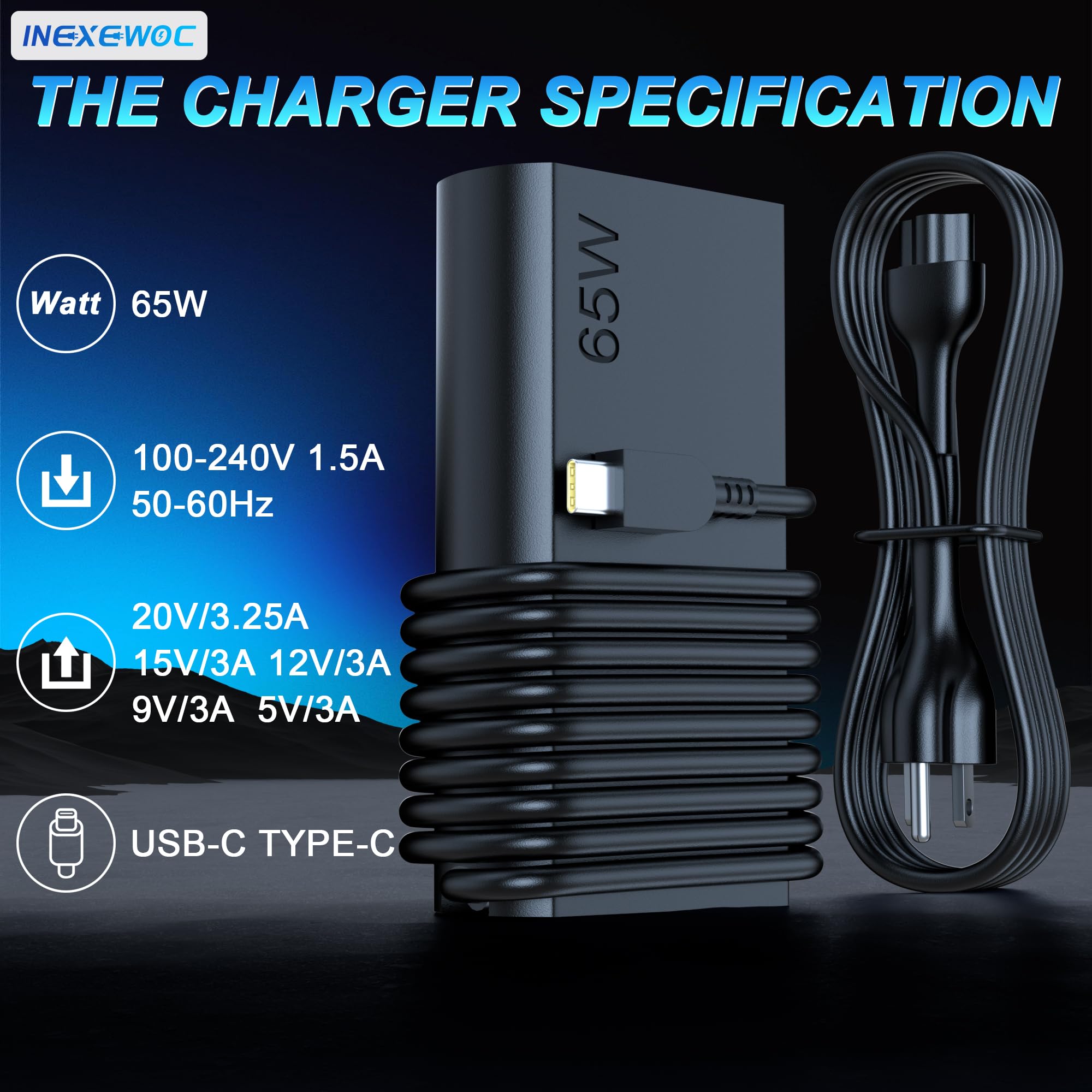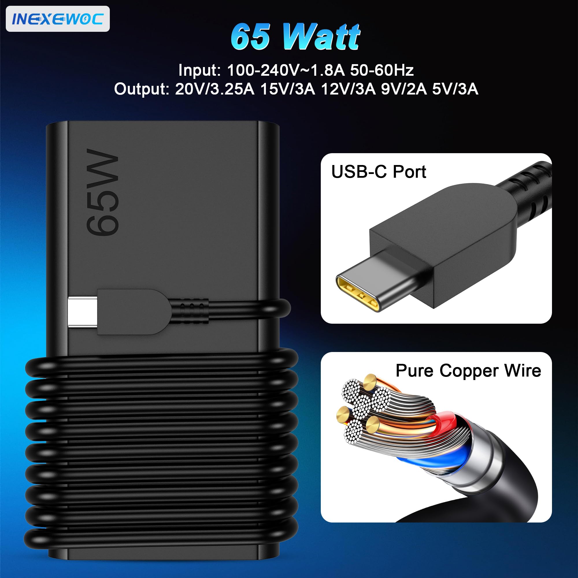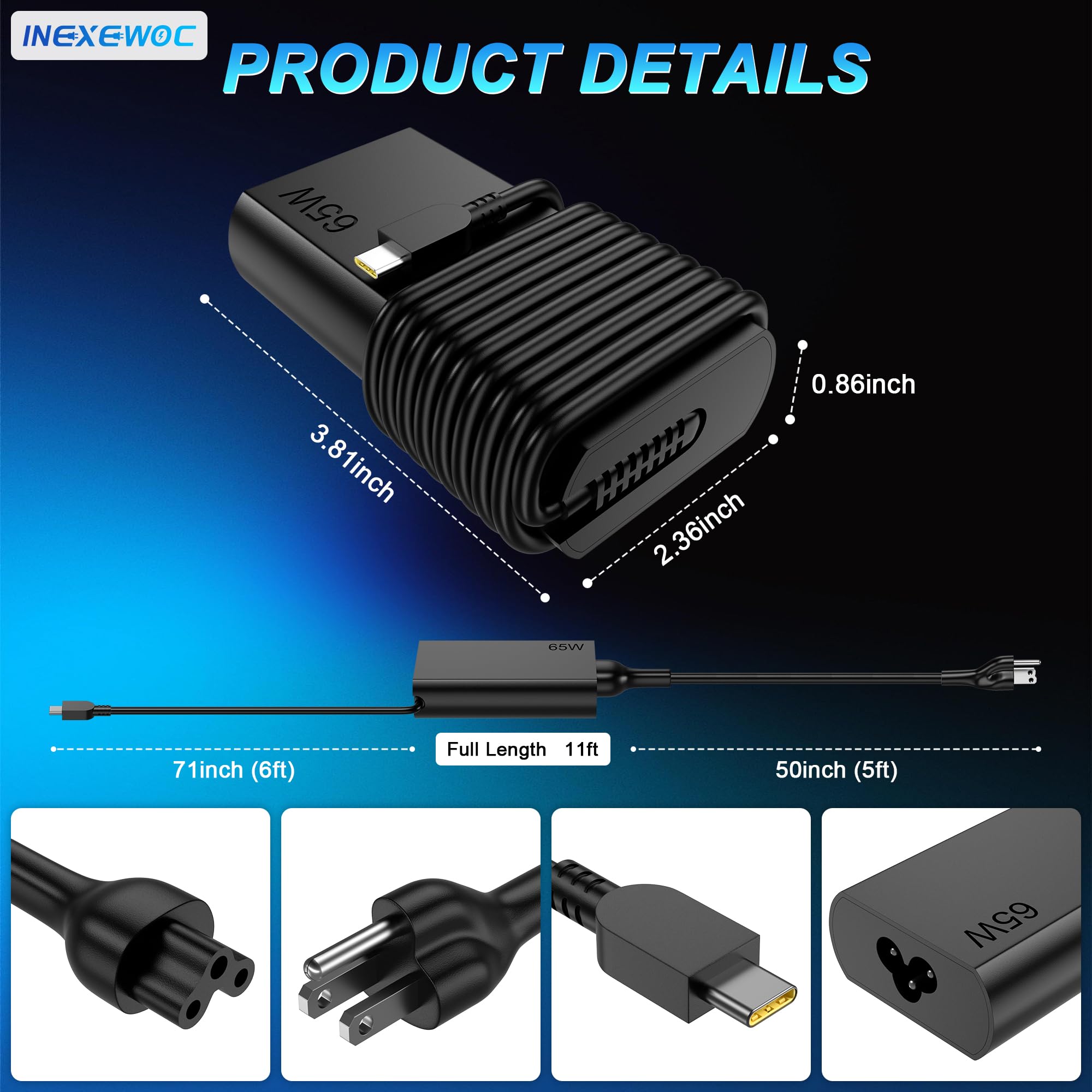 INEXEWOC New Slim 65W USB C Laptop Charger Compatible with Part Number: ADLX65YLC2A ADLX65YCC3A ADLX65YLC3A ADLX65YDC3D ADLX65YCC3D ADLX65YLC3D ADLX65YAC3A ADLX65YCC2A ADLX65YAC2A ADLX45YDC2A ADLX45UDCU2A ADLX45YCC2A ADLX45YCC3D ADLX45YLC3D ADLX45YDC3D ADLX65YDC2A