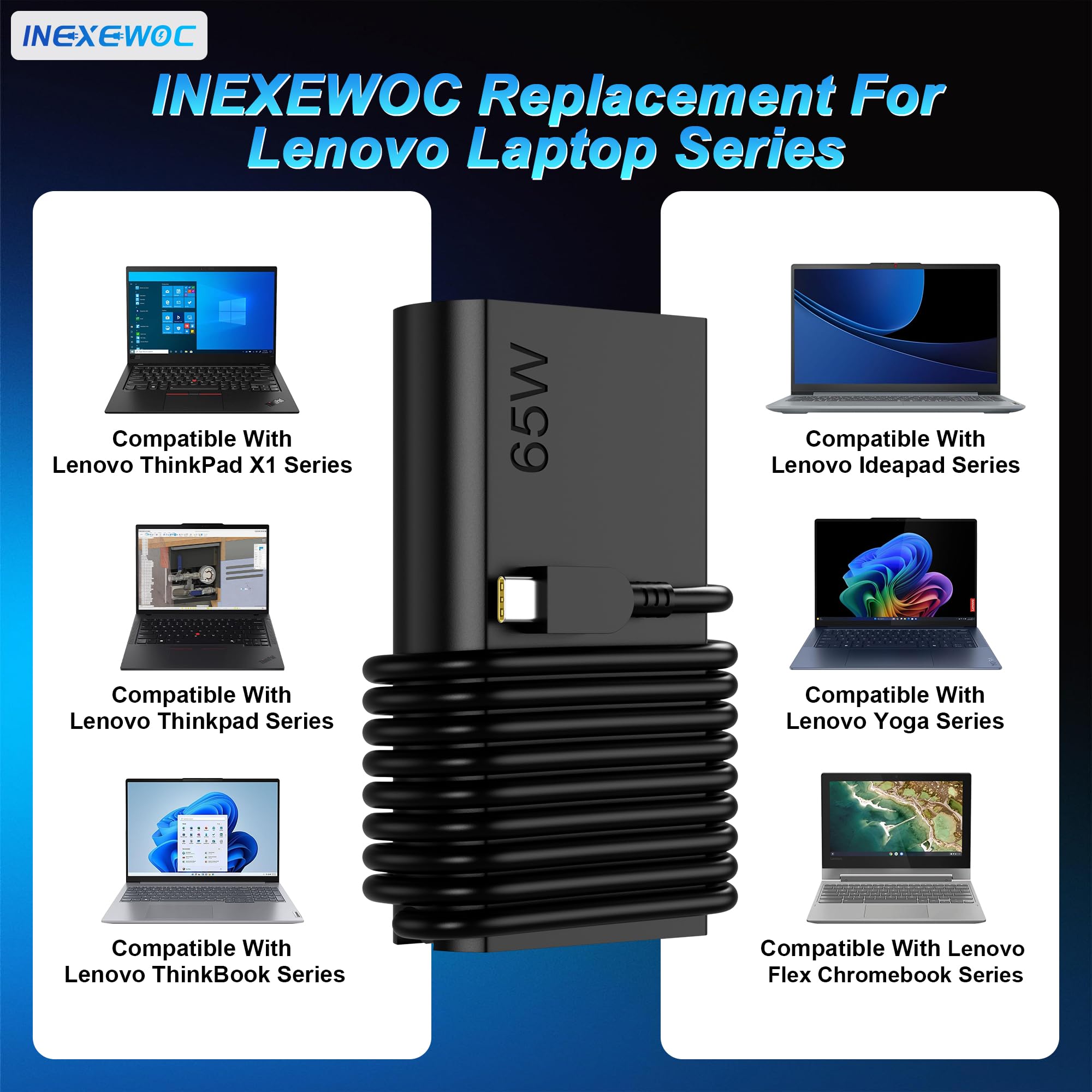 INEXEWOC New Slim 65W USB C Laptop Charger Compatible with Lenovo ThinkPad - Compatible with Lenovo Yoga S730 C930 C940 C740 730 730S 910 920 Series / Yoga 7i 9i 14" 15" 2 in 1 Laptop ; for Lenovo Chromebook 100e 300e 500e C330 C340 S330 S340 S345 C630 Laptop