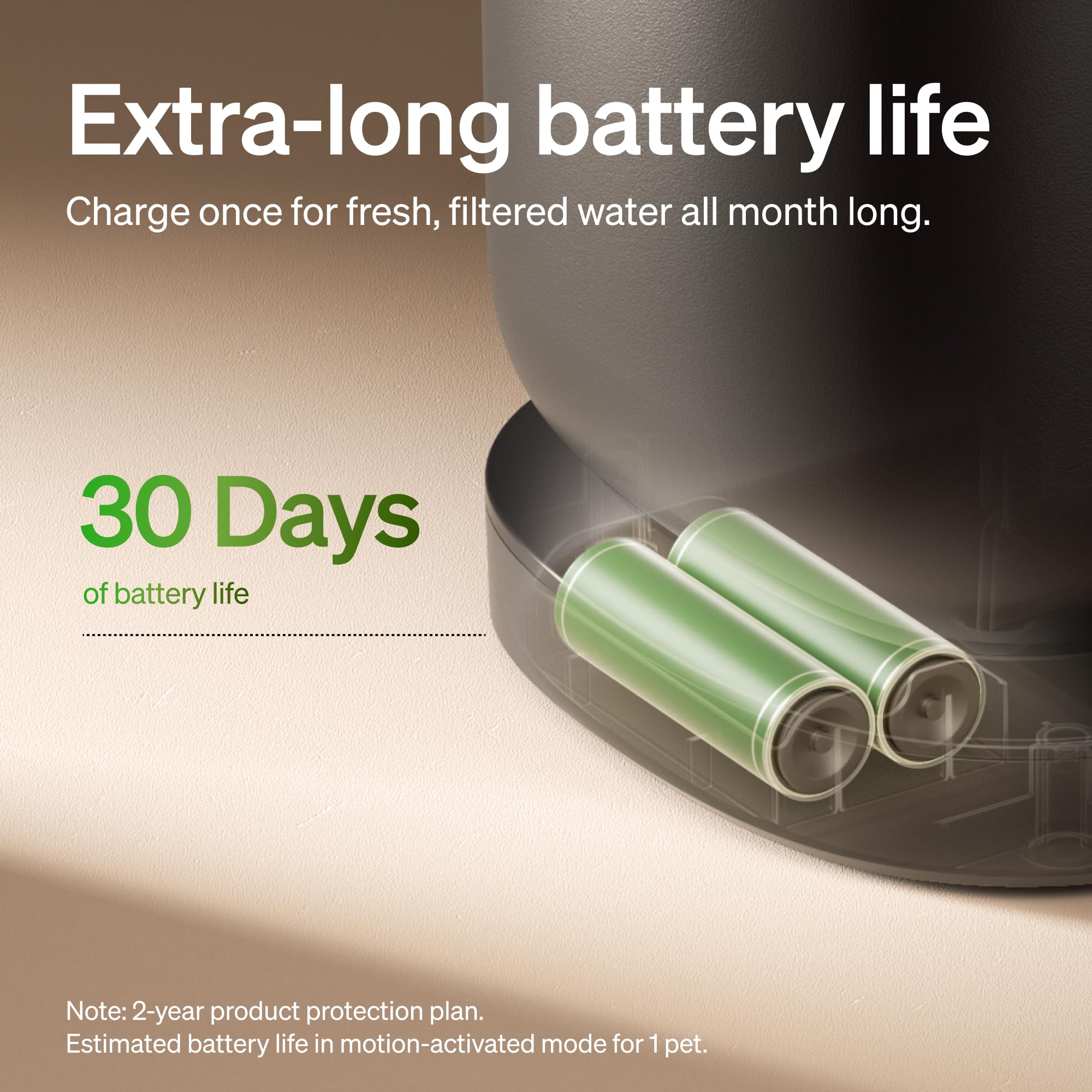 Exceptional Battery Life - Powered by 5,000mAh built-in rechargeable battery, the PETLIBRO wireless cat water fountain with stainless steel tray delivers fresh, clean water on a full charge. It will keep your pets well-hydrated even during power cuts or when you take short trips.