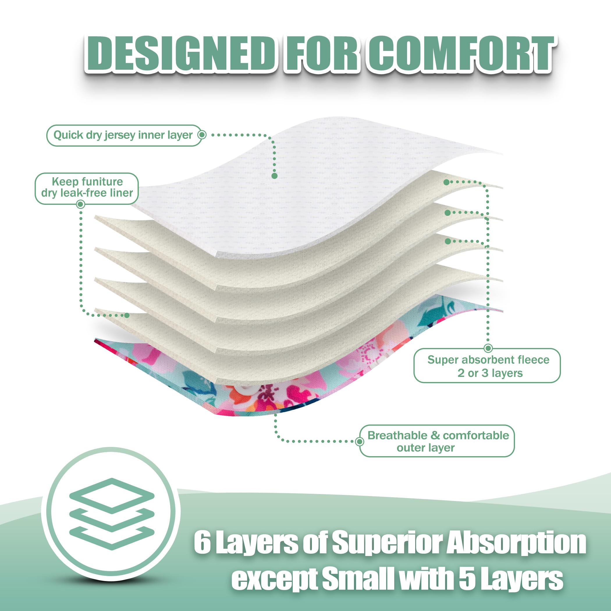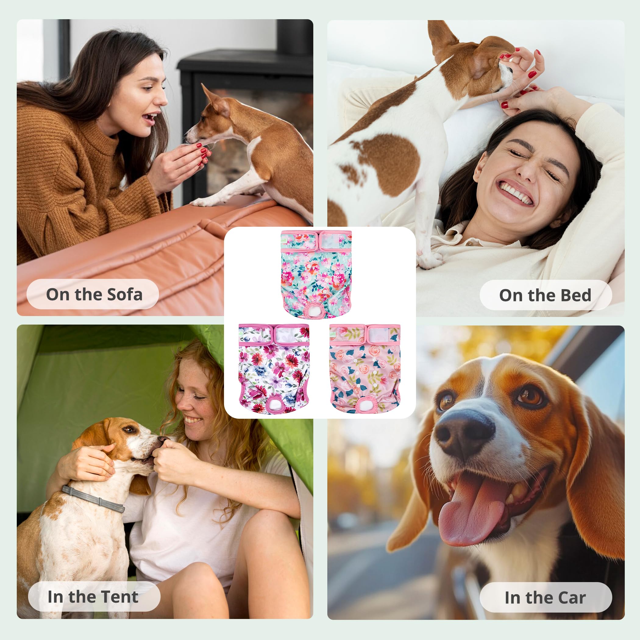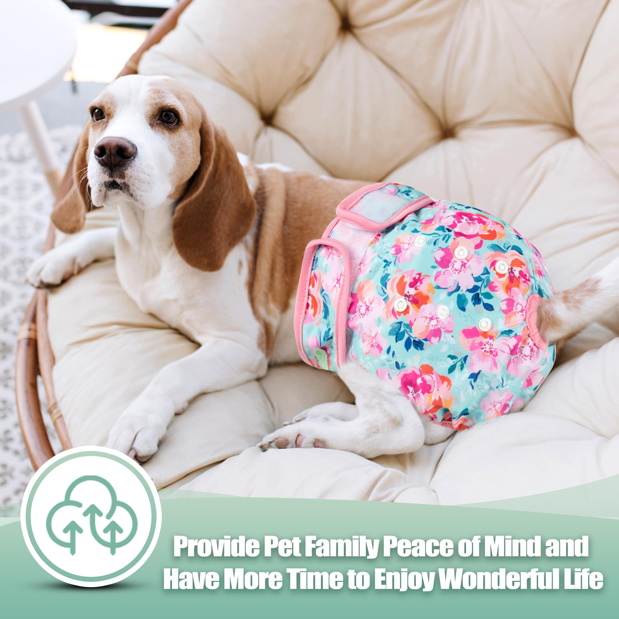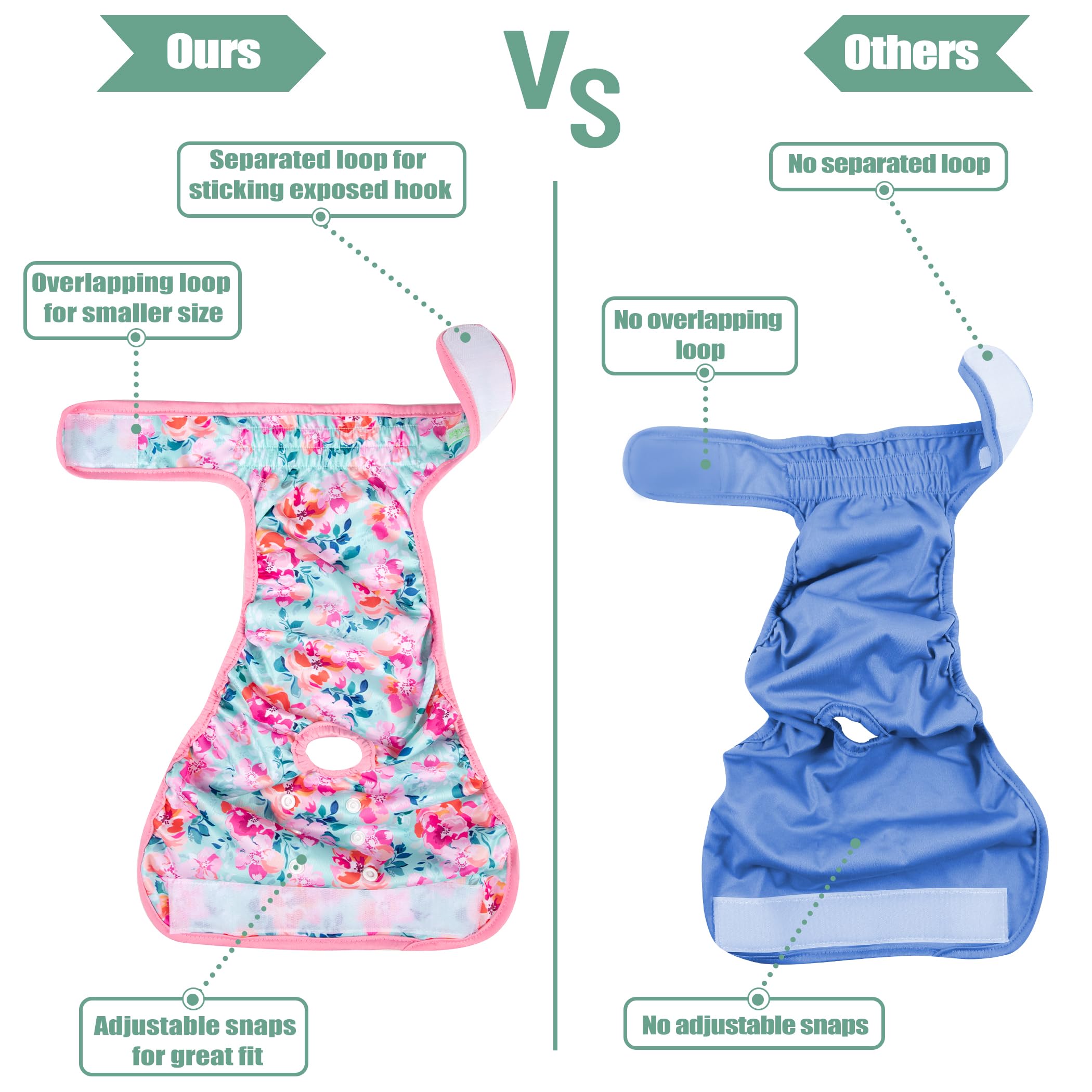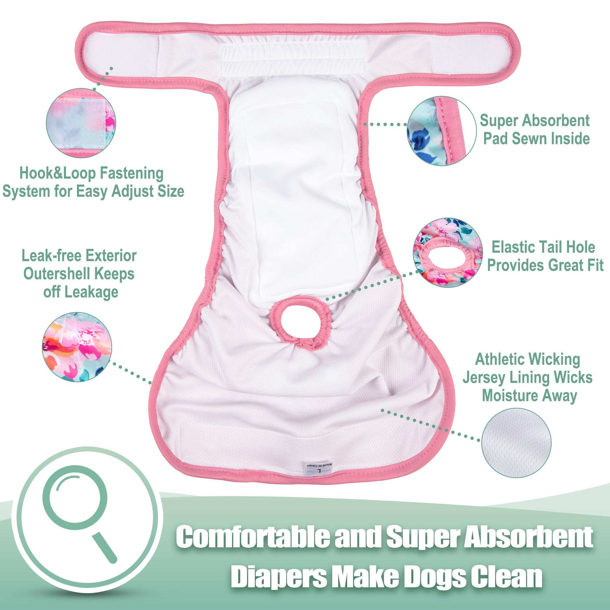 Washable dog diapers- Soft & Comfortable Diapers for Dogs - To increase your dog's comfort and acceptance our diaper wraps have no "crinkly" or uncomfortable texture that causes many dogs to dislike the ordinary disposable diapers. Hook & loop closures are quick and easy to put on and won't stick to your pet's fur.
