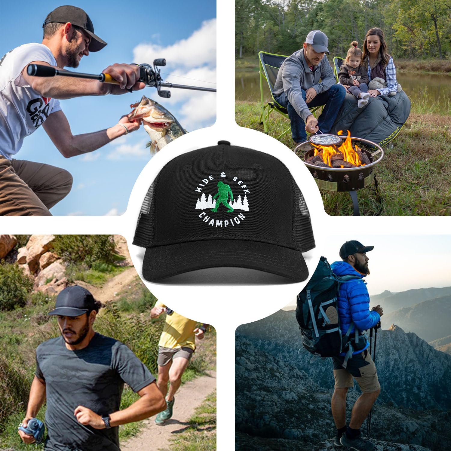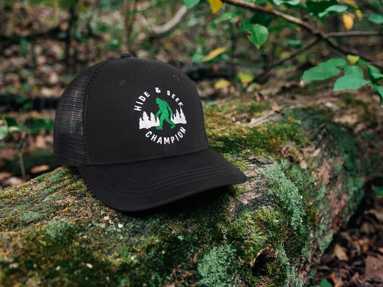 【Wild Bigfoot Designs】: This Bigfoot hat features a unique design that combines elements of forest and mountain scenery, with an embroidered Sasquatch on the front. It's the perfect accessory for Sasquatch enthusiasts and outdoor enthusiasts, as it blends seamlessly with any outdoor attire and is sure to turn heads wherever you go.