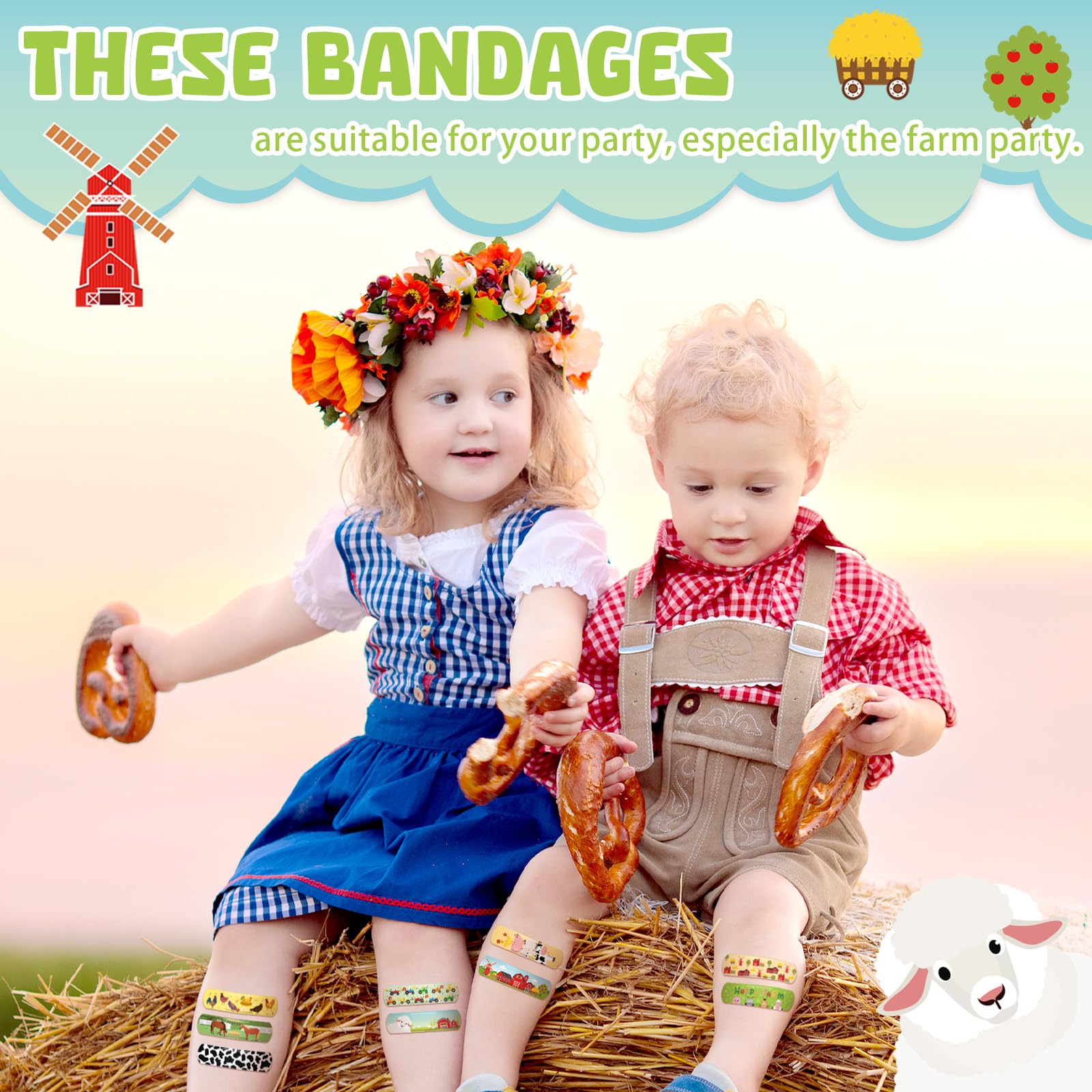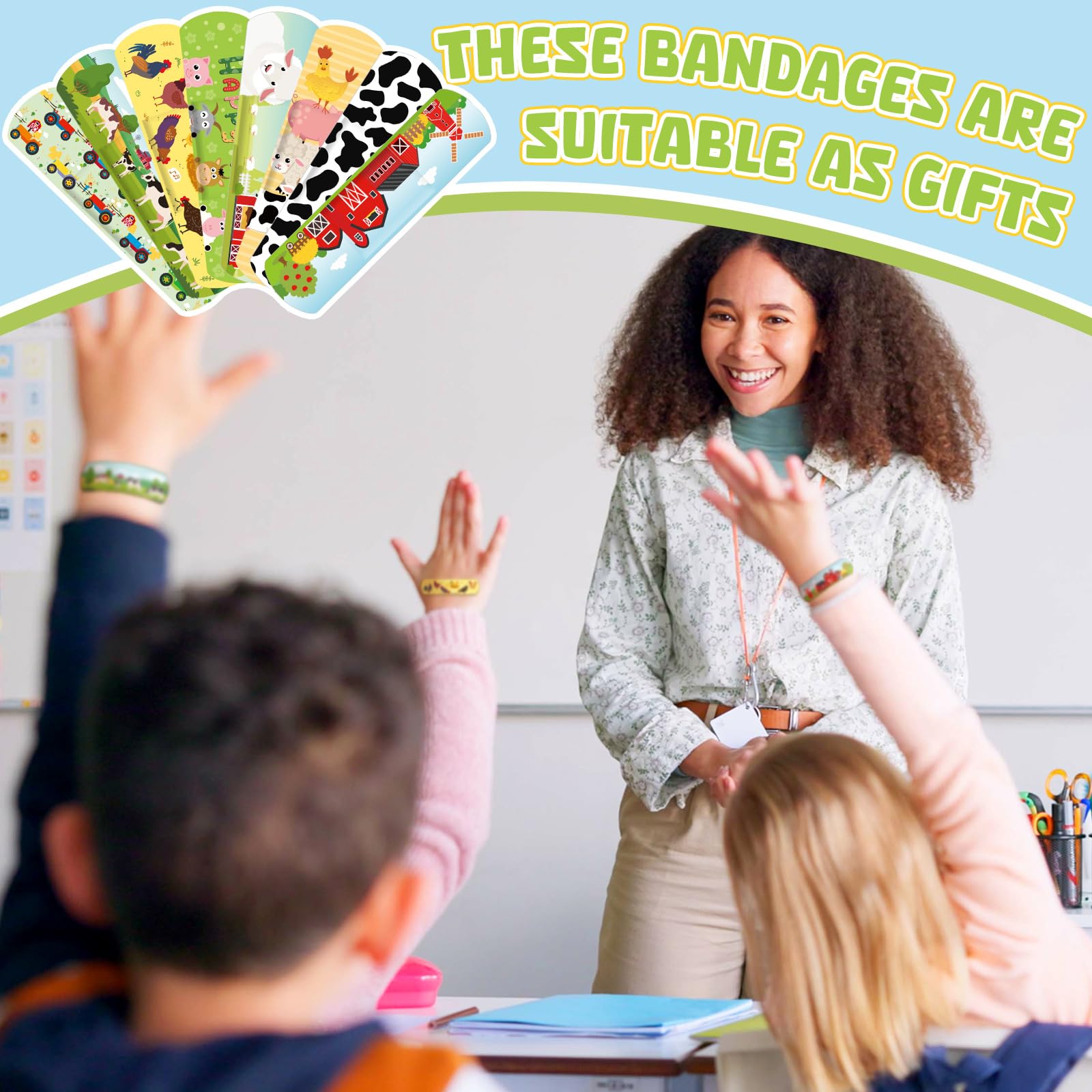 Farm Animals Bandage: 120 farm animals themed bandages with 10 interesting and bright farm animals pattern designs; These bandages not only help protect minor cuts and wounds, but also interestingly remind us that farm animals gives us comfort and love