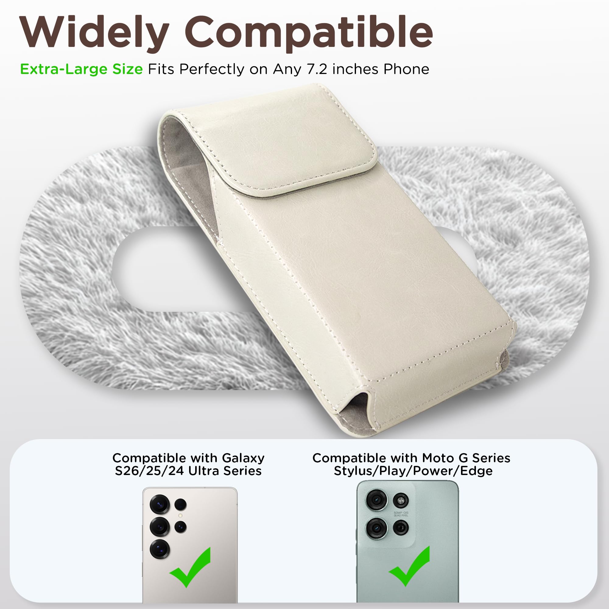 [Premium Durable PU Leather] The elegant phone holster is made of high-quality PU leather materials with metal belt clip, which not only shows a stylish and unique texture, but also protects your phone from scratches and damage.