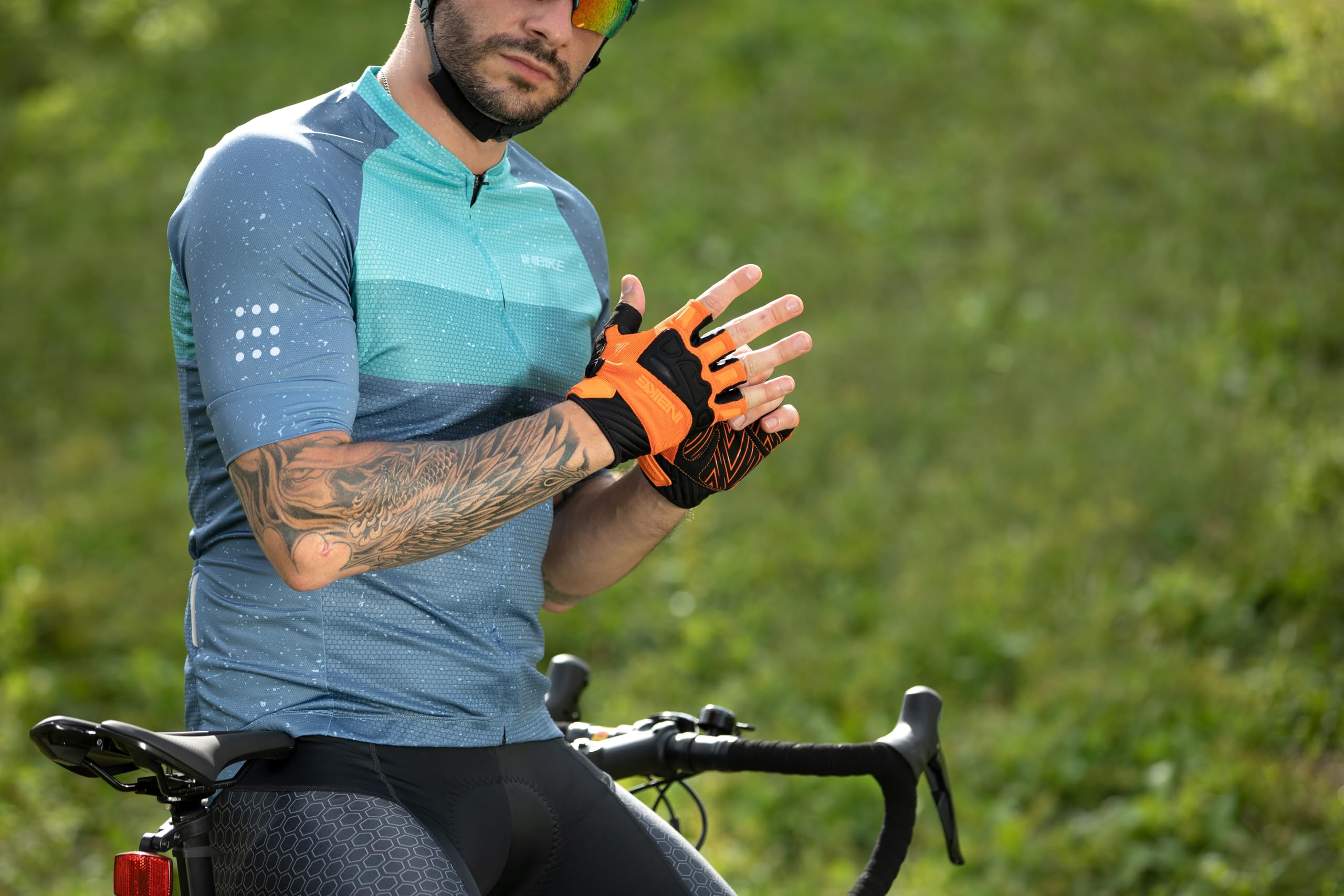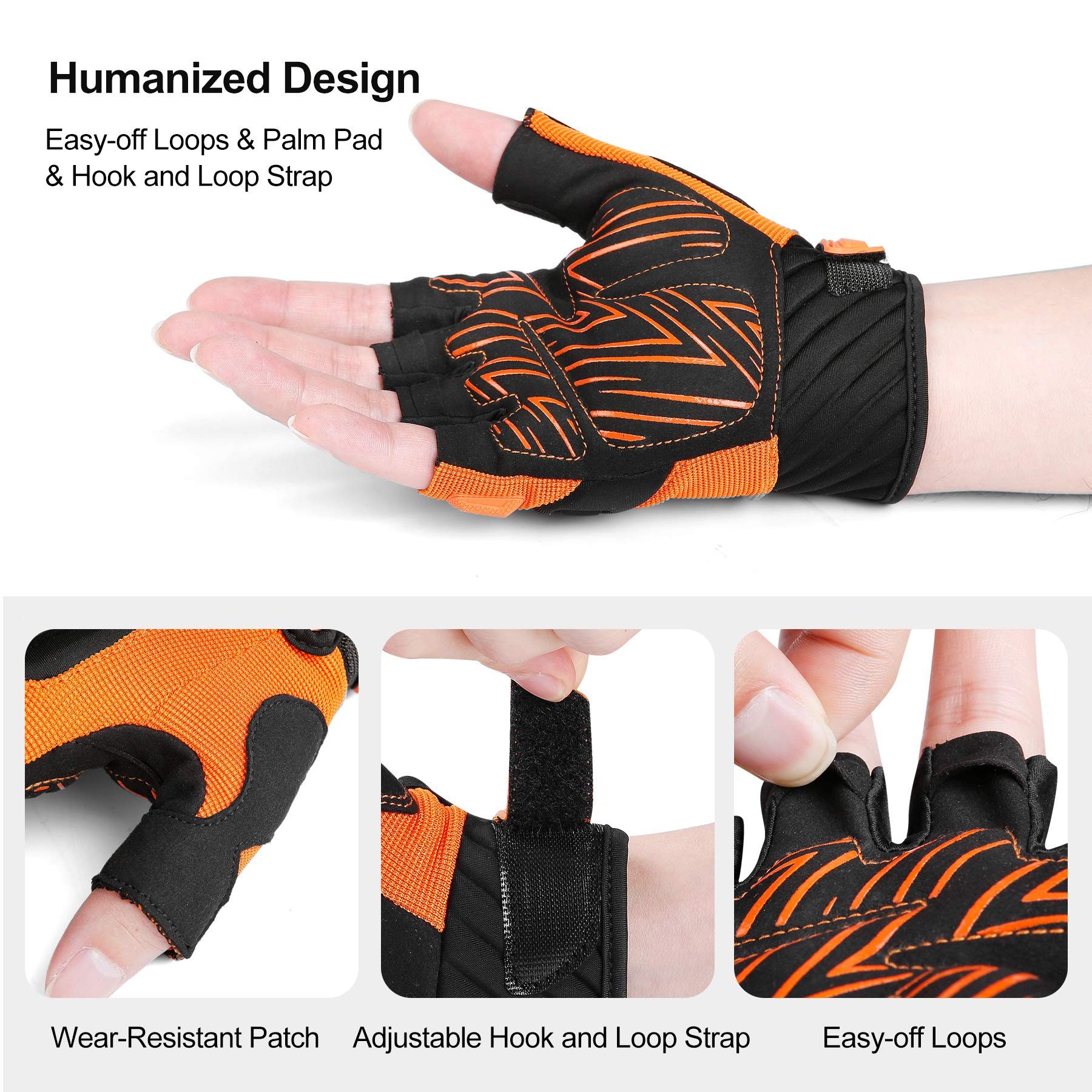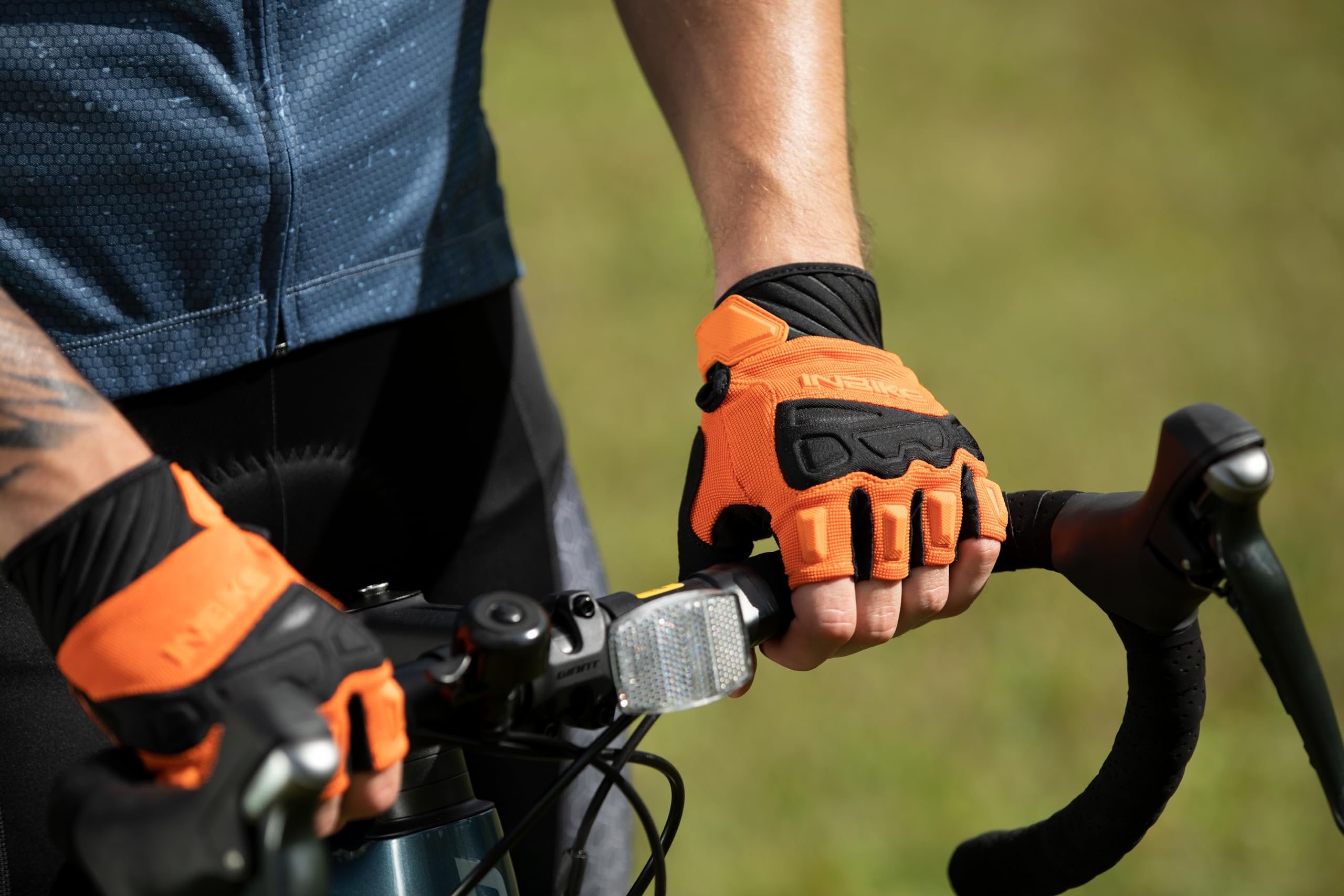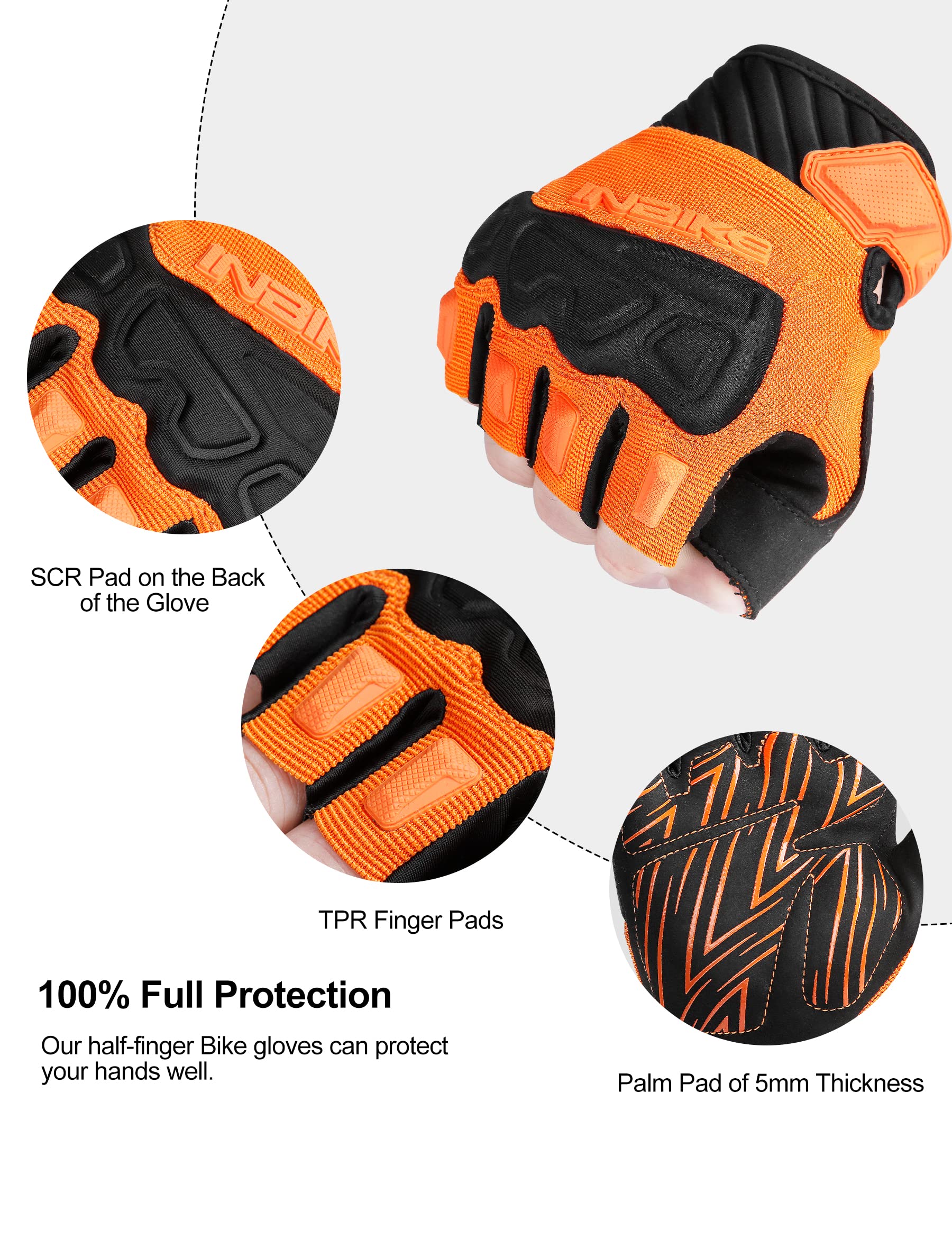 【Humanized Design】INBIKE cycling gloves perform its high quality in full details. Hook and loop strap helps you adjust the tightness to make half-finger cycling glove fit you. It is also convenient to take off the half-finger gloves with the easy-off loops which are designed on the middle finger and ring finger. Comfortable hemming protects wrist while absorb sweat.