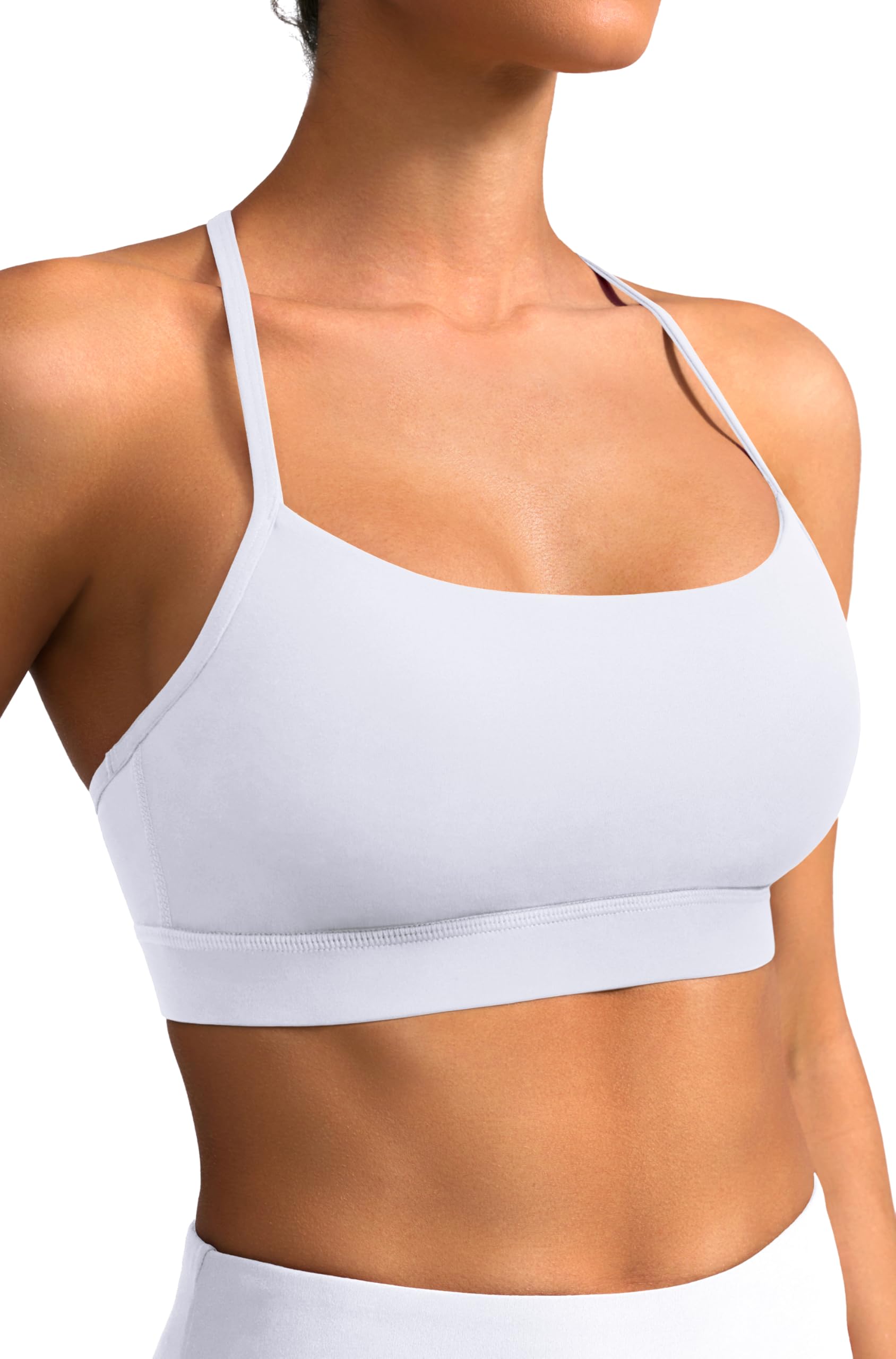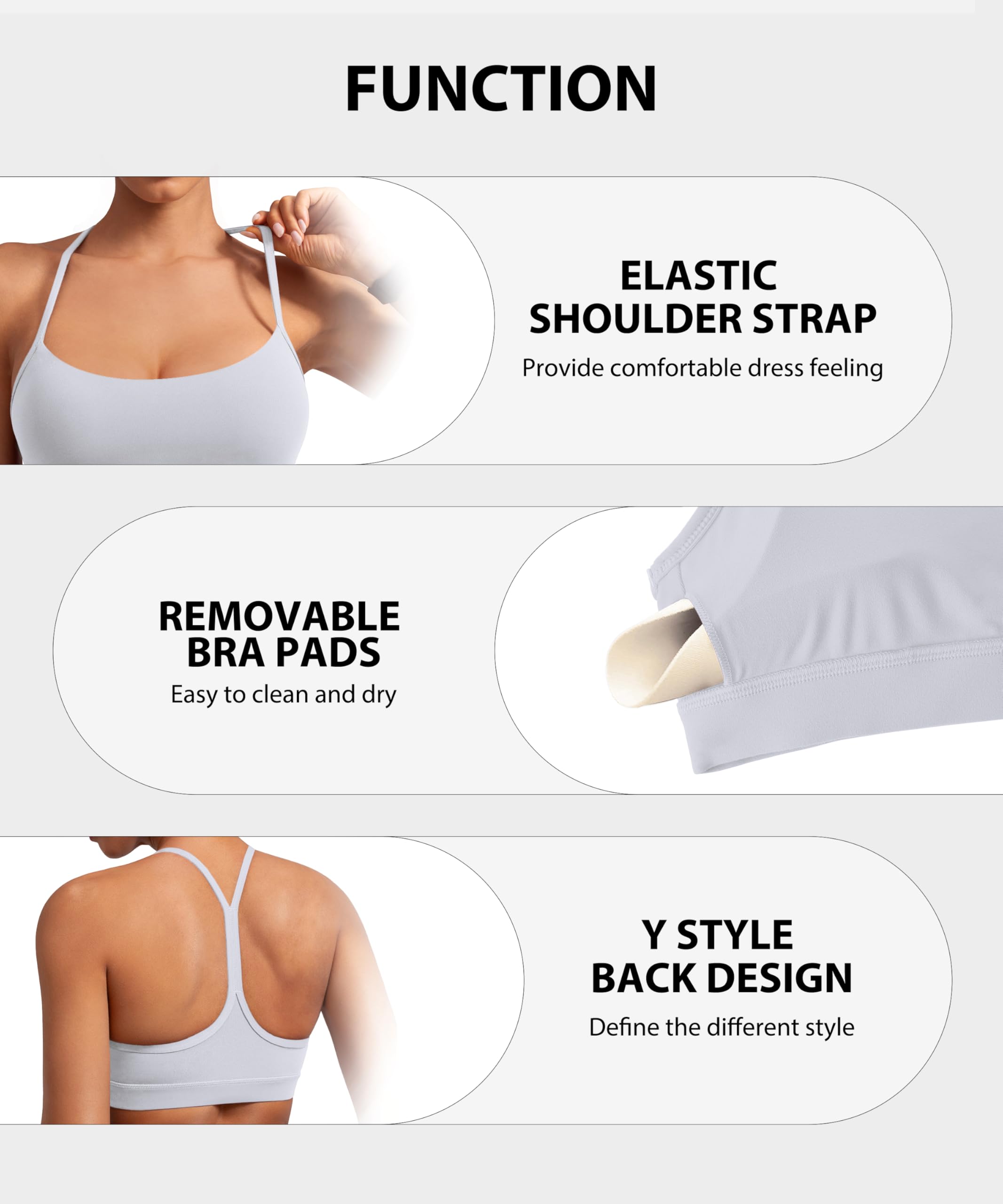 Comfortable Y-Back Design: Enjoy a full range of motion with this sports bra's Y-back strap design. Thin straps form a supportive Y-shape at the back, freeing your shoulders to move without restriction during workouts. The racerback-style Y design also prevents strap slipping or chafing, ensuring lasting comfort during every pose or activity. Plus, the open-back style allows airflow to keep you cool and adds a stylish touch to your workout outfits.