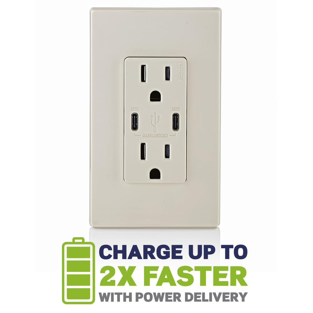 The T5635-00T 30W (6A) Dual Type-C USB with Power Delivery (PD) is the most advanced USB In-Wall Charger on the market offering up to 30 Watts of charging power on a single port. Enjoy high-speed, efficient charging of laptops, tablets, smartphones and more. Smart chip technology optimizes charging and prevents overcurrent for safer, reliable performance. The Dual Type-C with Power Delivery (PD) USB In-Wall Charger easily replaces a standard outlet for a convenient upgrade and is also compatible with non-PD devices as well as USB Type A devices (adapter required).