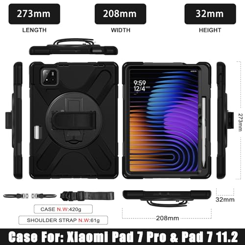 [Precise Cutouts] All cutouts fit your Xiaomi Pad 7 Pro 11.2 inch perfectly, Easy access to all tablet's ports(sensors, speakers, flash, cameras, charging port), without having to remove the tablet from the case.