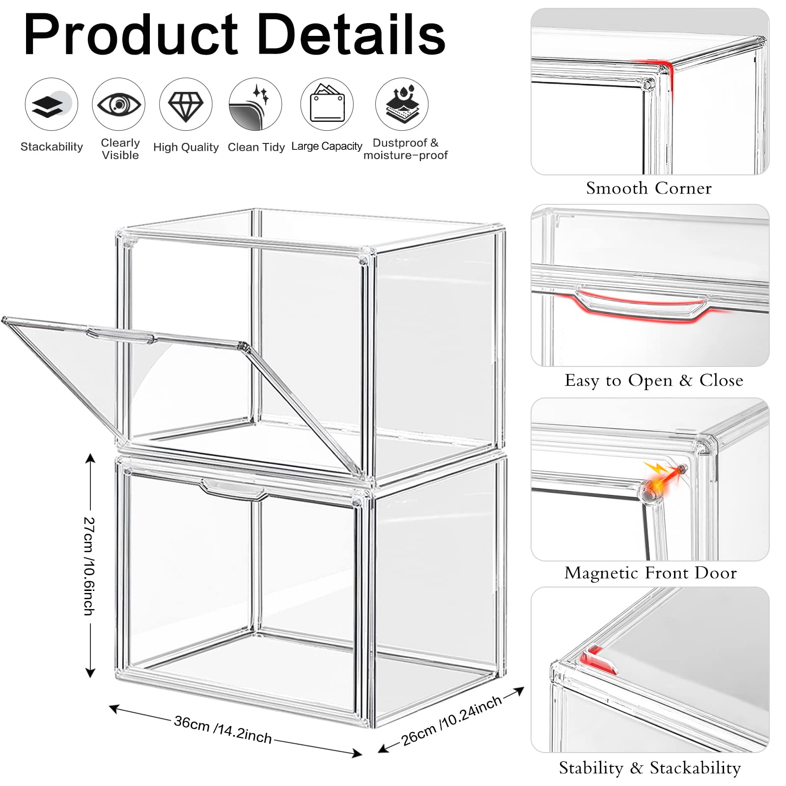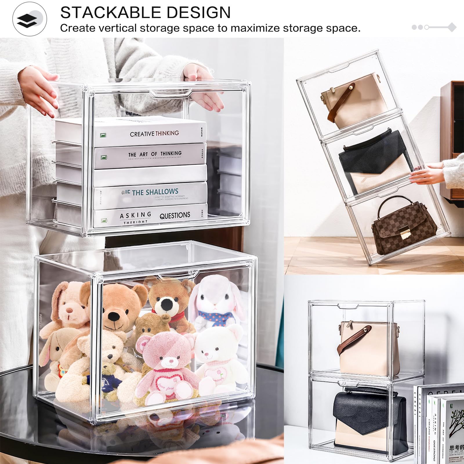 Extra Large Capacity - There comes with 4 pieces of clear acrylic case, each of which is approx. 14.2 x 10.24 x 10.6 inches. Overall assembled size: 28.4 x 10.24 x 21.2 inches. Large enough for placing your handbags, purses, shoulder bag and more.
