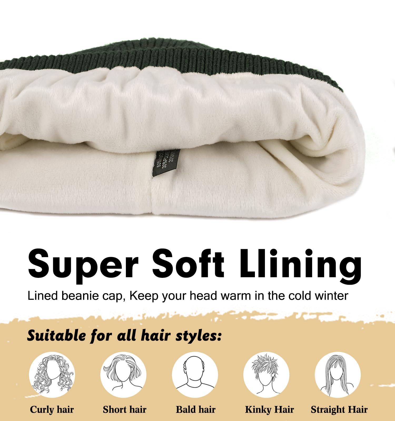 Premium Warm Beanie: Mens warm winter hat is made of high quality stretchy polyester fabric and soft-spun knitted. No shedding extremely comfortable soft and lightweight, holds shape and color after washing, for keep you warm in extremely cold winter days. The knit beanie skull cap is fleece lined that protects you from strong winds and itching