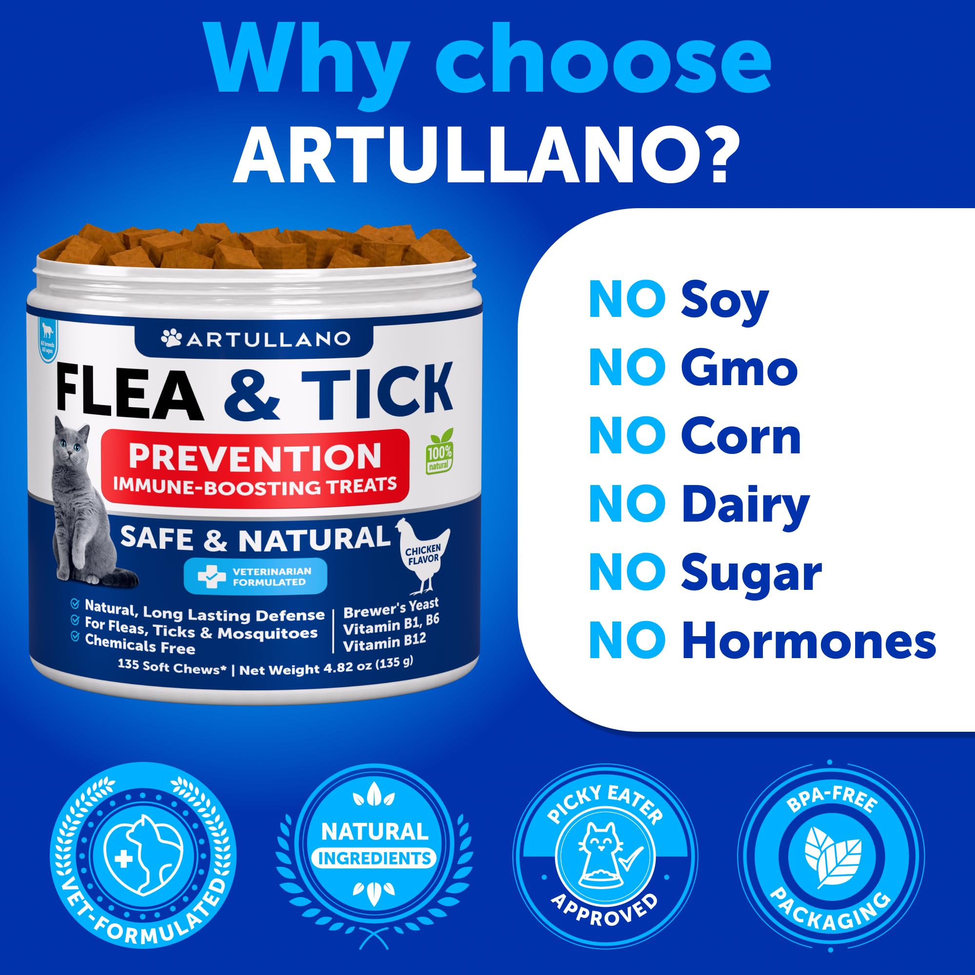 Quality Ingredients for Protection: Formulated with flea prevention for cats in mind, these chews contain Vitamin B1, B6, and B12, along with Brewer's Yeast, which naturally supports skin and coat health.