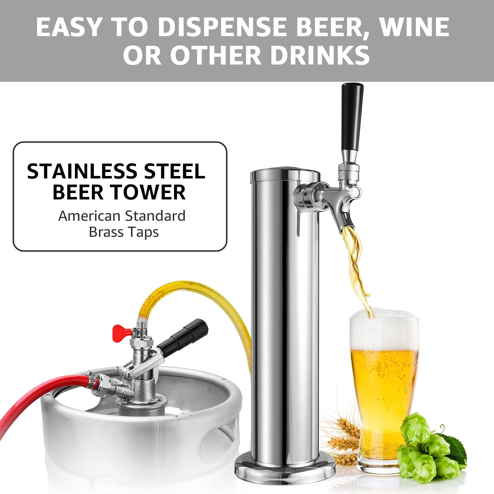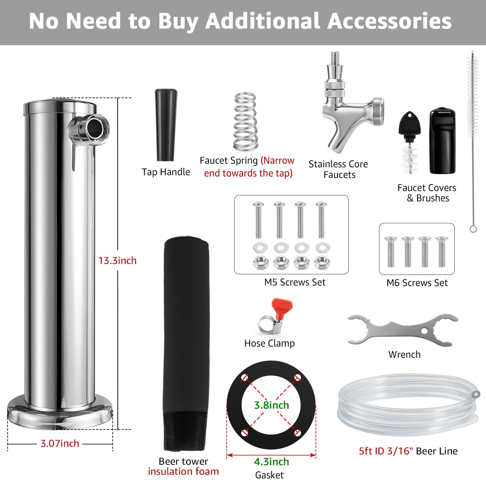 Pre-Installed Accessories: The 5ft 3/16’’ ID beer lines and beer tap shank are pre-installed in the beer tap tower to save you time. You can install your single-tap beer tower into your kegerator or countertop in just minutes.