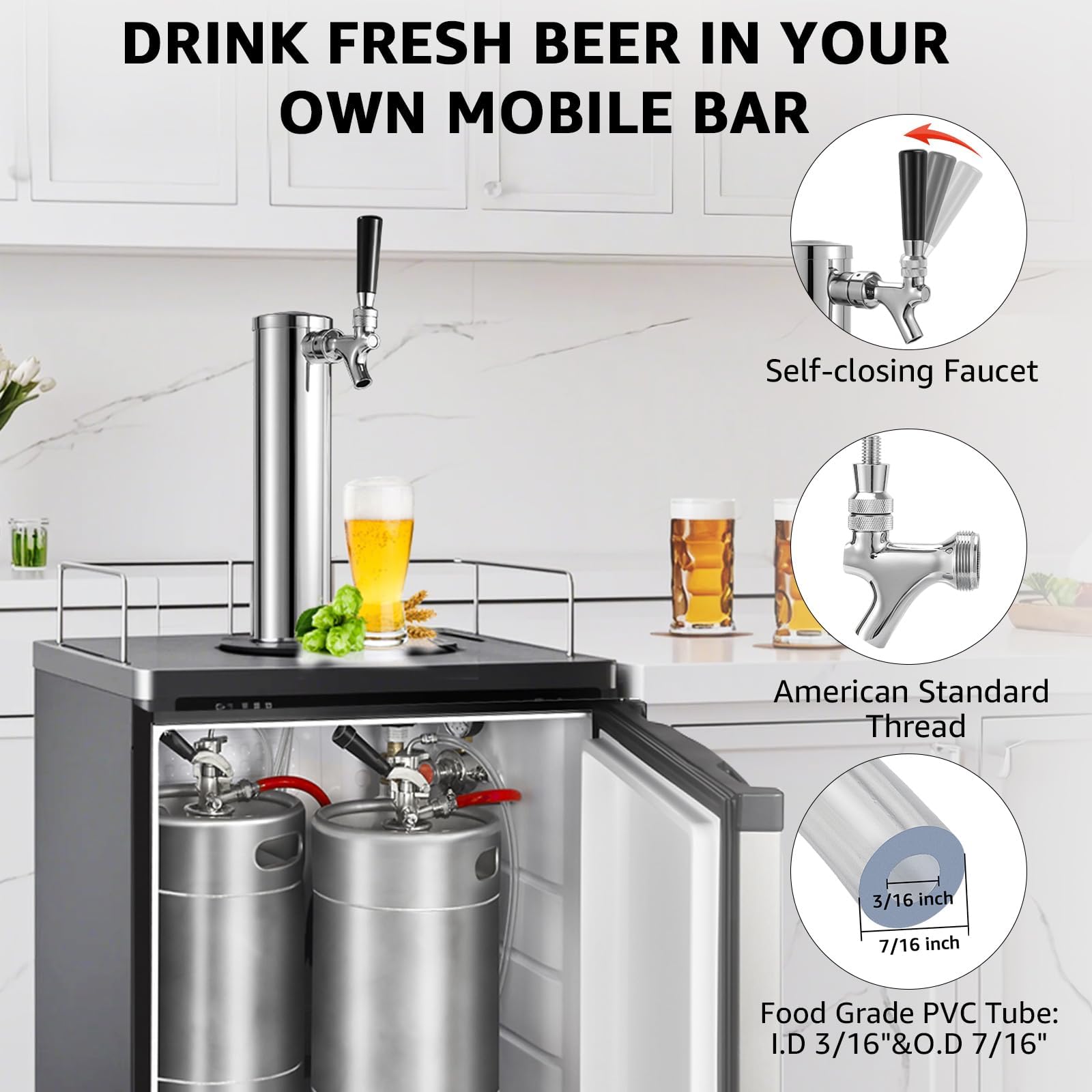 Upgraded Self-closing Faucet: Equipped with faucet spring. When you accidentally touch the faucet handle, it will rebound immediately and close the beer faucet in time, thus reducing beer waste.