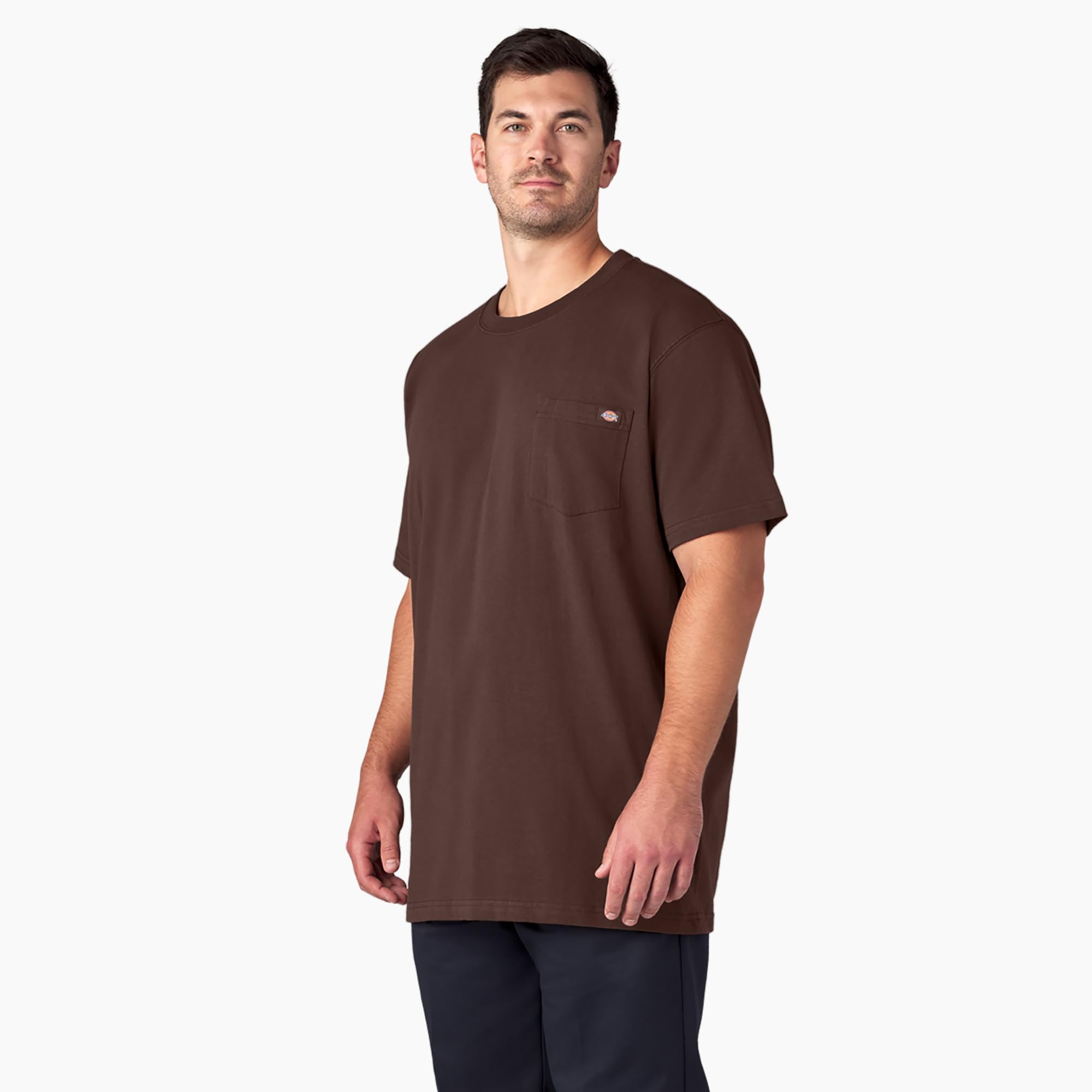 Description Hard-working men everywhere will be comfortable in the Dickies' Short sleeve heavyweight crew neck t-shirt. Made of a jersey knit material, this heavyweight cotton blend is durable, and designed with cotton comfort. On top of the fabric durability, The taped neck and shoulder seams up the ante on strength for longer wear.