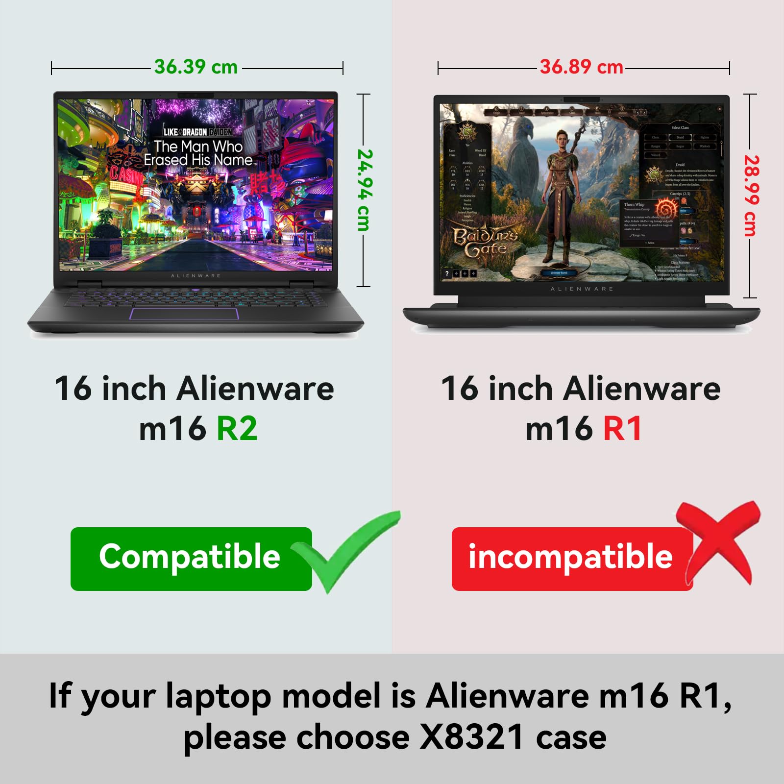 Compatibility: designed to perfectly fit for 16 inch Alienware m16 R2 Gaming Laptop (NOT FIT Alienware m16 R1 !!!). If your laptop model is Alienware m16 R1, please choose X8321 case