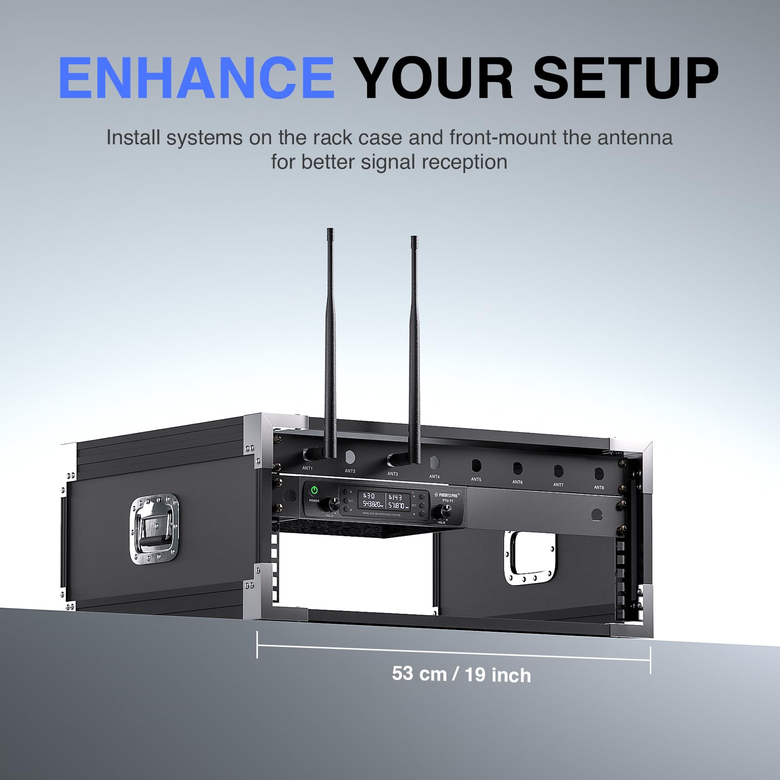COMPATIBILITY: Compatible with half-rack wireless systems, including the Phenyx Pro PTU-71/PTU-1U/PTU-52/PTM-10/PTM-11. These systems can be mounted on racks and this antenna kit can help front mount the antennas for better reception and flexibility
