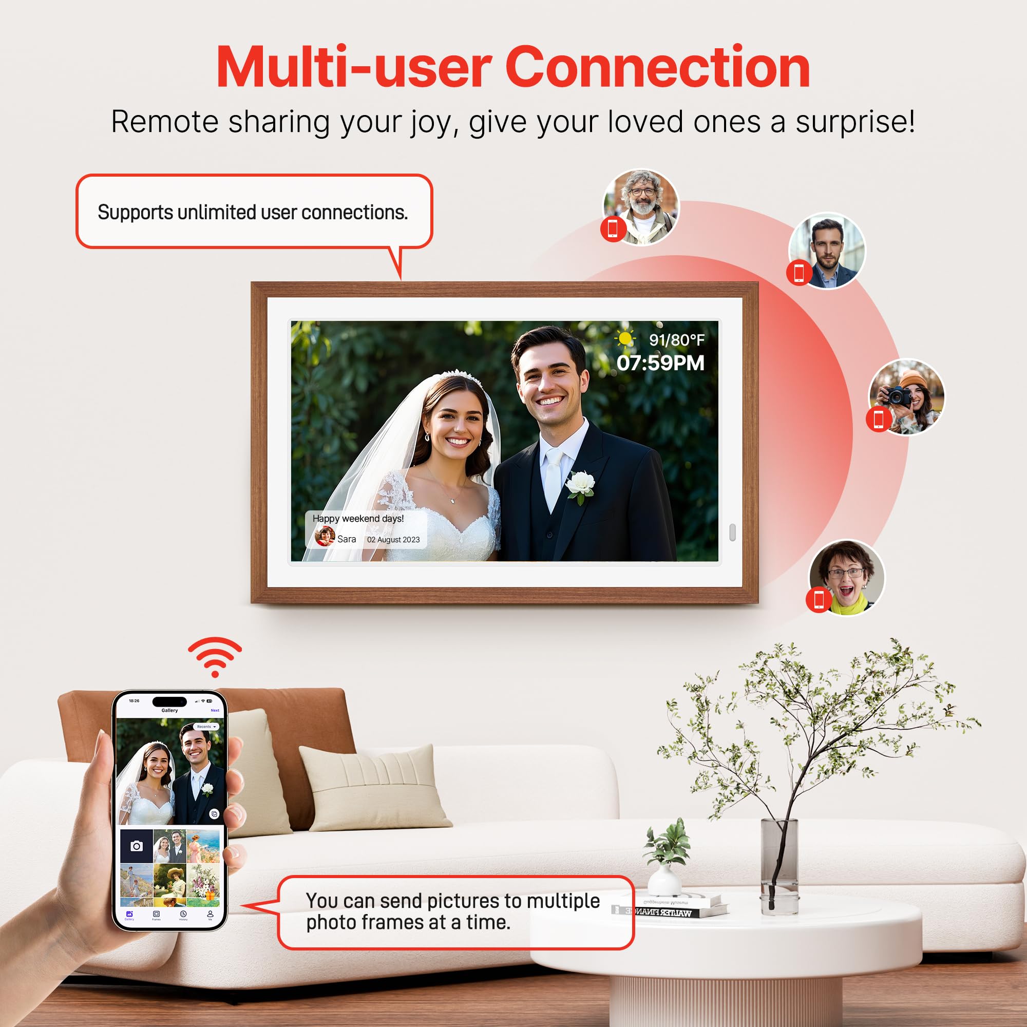 【Easy And Quick Setup】You can download the Uhale app (available for both Android and iOS) and use it for free for life. Setting up your digital photo frame is a breeze—just use the remote control to get it ready in under a minute. This large digital photo frame uses 2.4G+5G dual WiFi technology, you can easily transfer up to 100 photos at once, easily sharing precious moments with family and loved ones, no matter where they are!