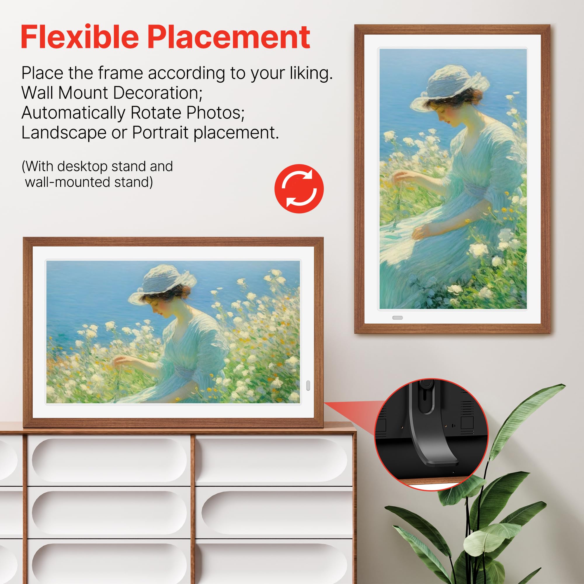 【Elegant Design for Any Space】Featuring a timeless solid wood frame, this digital photo frame enhances any decor and is perfect for displaying your art collection and treasured memories. Whether it's in your living room or bedroom, it blends in perfectly. It's also perfect for a variety of commercial uses, such as displaying movie posters, corporate promotions, product displays, art exhibitions, library and hotel decorations, and more