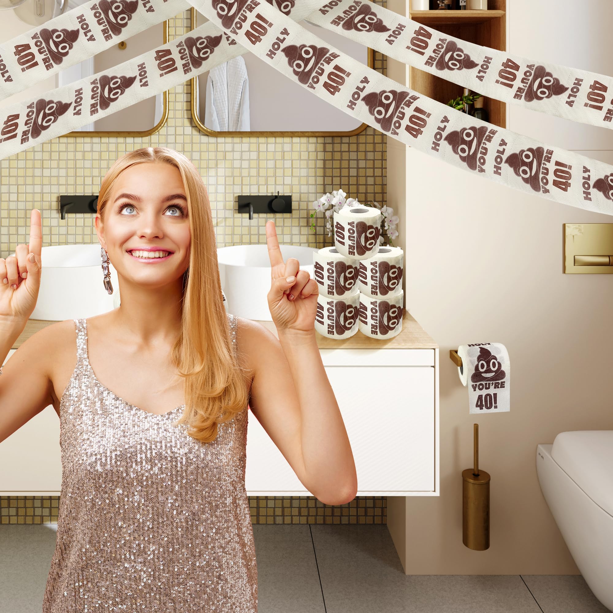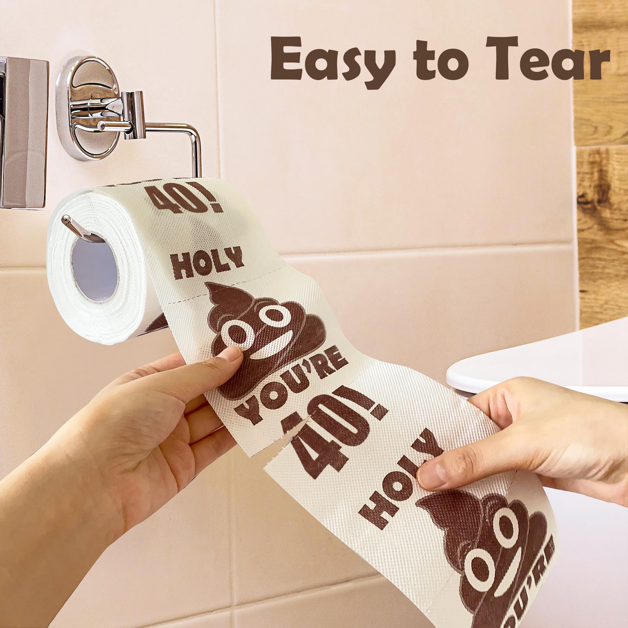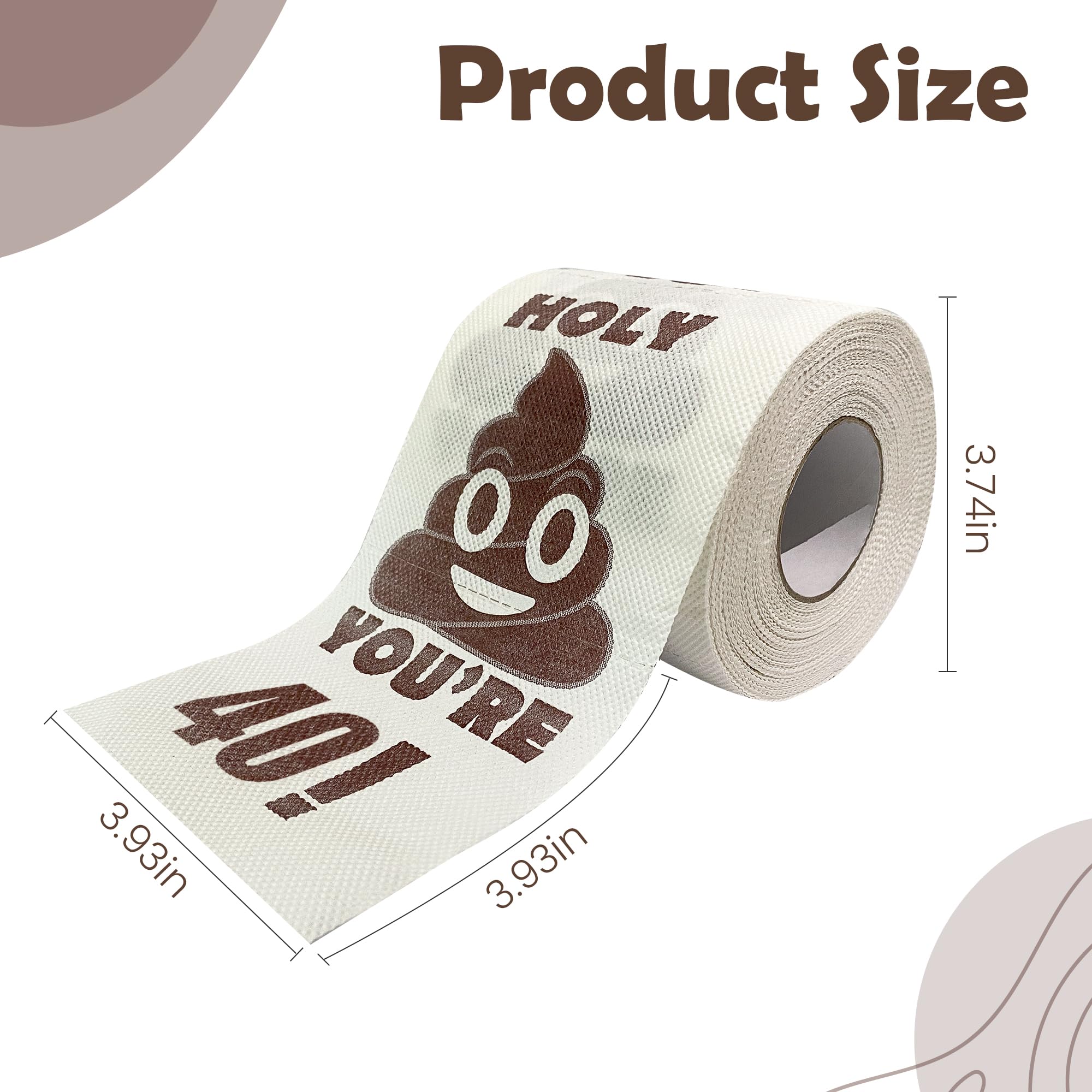 Durable & Practical: Our High-Quality funny Birthday toilet paper rolls are funny and practical! These comfy Birthday gift toilet paper gifts are great for use and super soft and absorbent! Need a laugh at the office or at home? Add to the 40th birthday turners' restroom or use it as a streamer to decorate their home, and catch their funny reaction