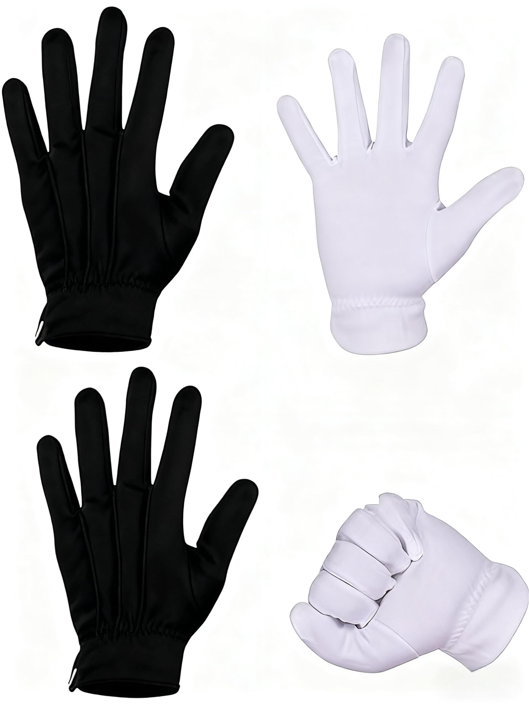 Package content: 1 pair of white stitched cotton gloves and 1 pair of black stitched cotton gloves