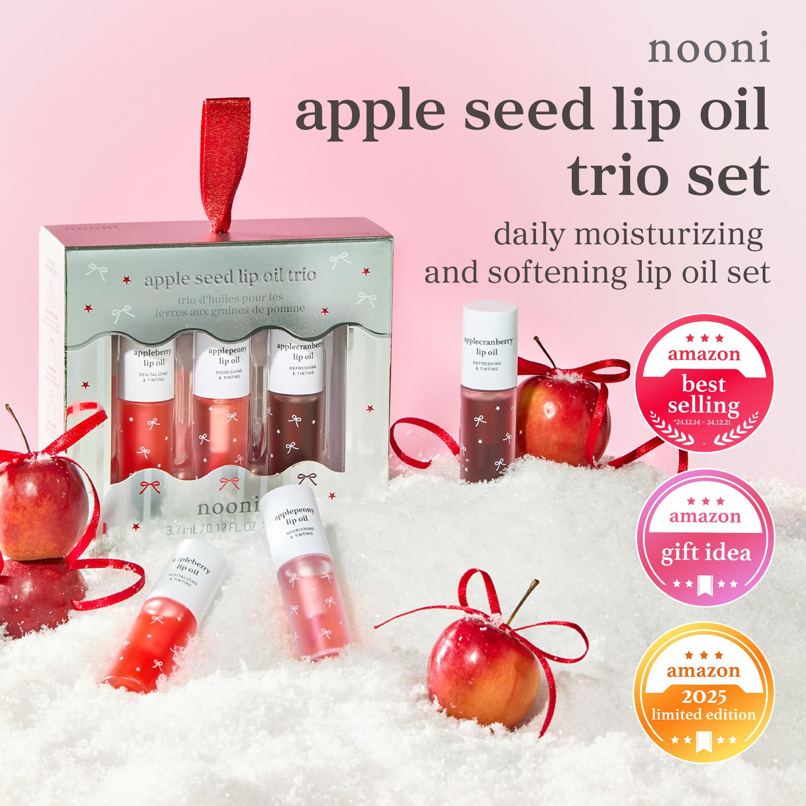 NOONI LIP OIL GIFT SET: A NOONI Korean lip oil set featuring our hot-selling long-lasting lip stains in pink and red. Packed in a lovely gift box, it’s the perfect K-beauty lip tint gift for birthdays, holidays, Christmas, or any special occasion.