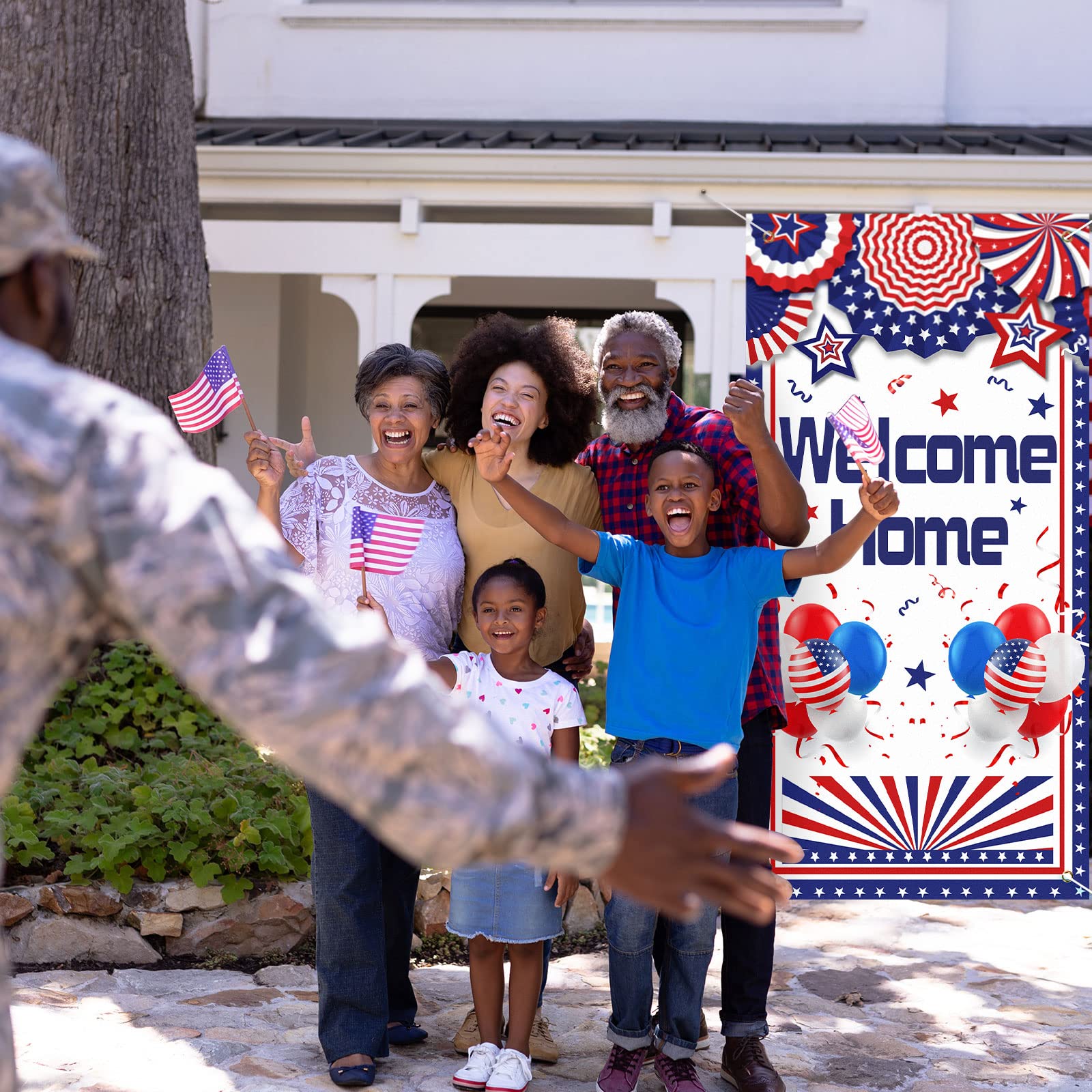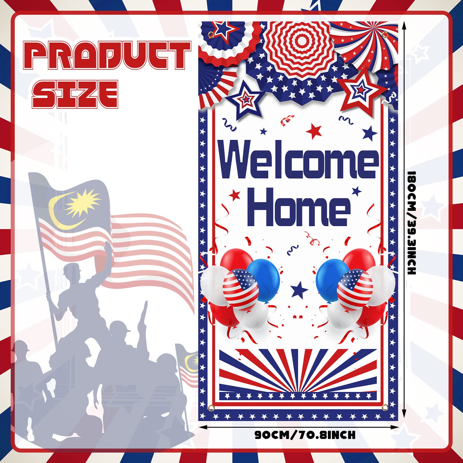 Stylish Deployment Returning Design: these deployment returning decorations adopt neutral red, blue and white as the main color, the realistic flag is surrounded by balloons and other aesthetic elements, making your door decoration more attractive, whether they are on the door or in the garage, they will be nice choices