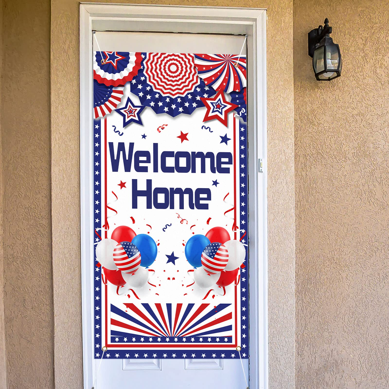 Wide Application: our large deployment returning decorations for women fit most doors, you can put them in the front door, bedroom door, bathroom door, classroom, garage, office or any indoor, outdoor door, you also could use these themed door covers as the background of the party photo booth, suitable for birthday party supplies, farmhouse decor, Independence Day decorations, Christmas decorations